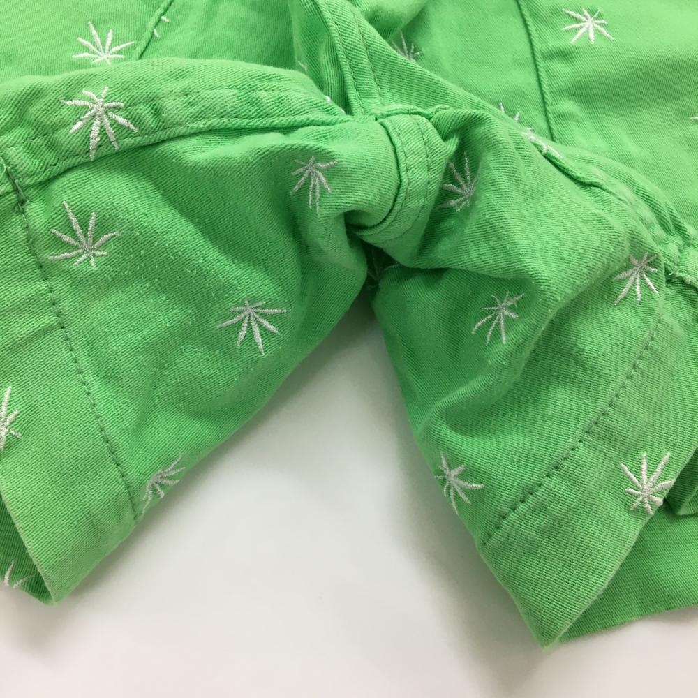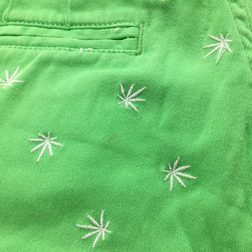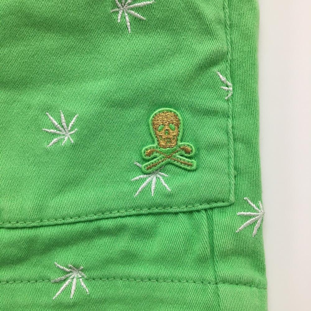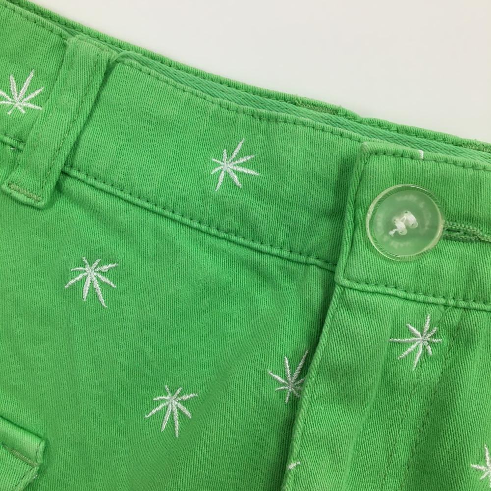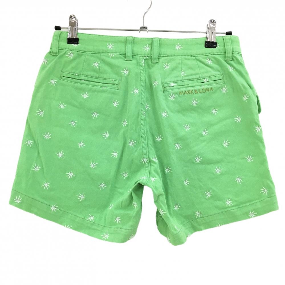 マークアンドロナ ショートパンツ ライトグリーン×白 リーフ柄刺しゅう レディース M ゴルフウェア MARK&LONA