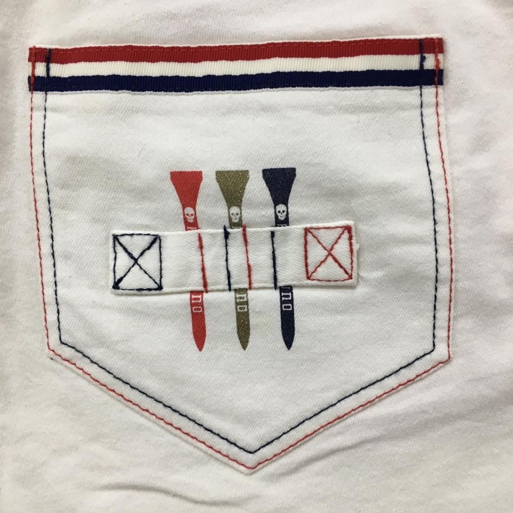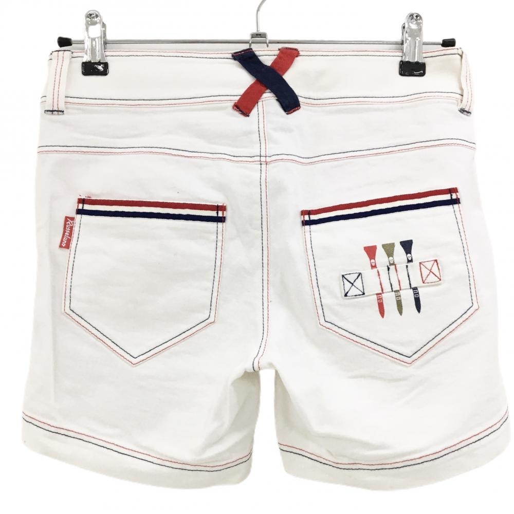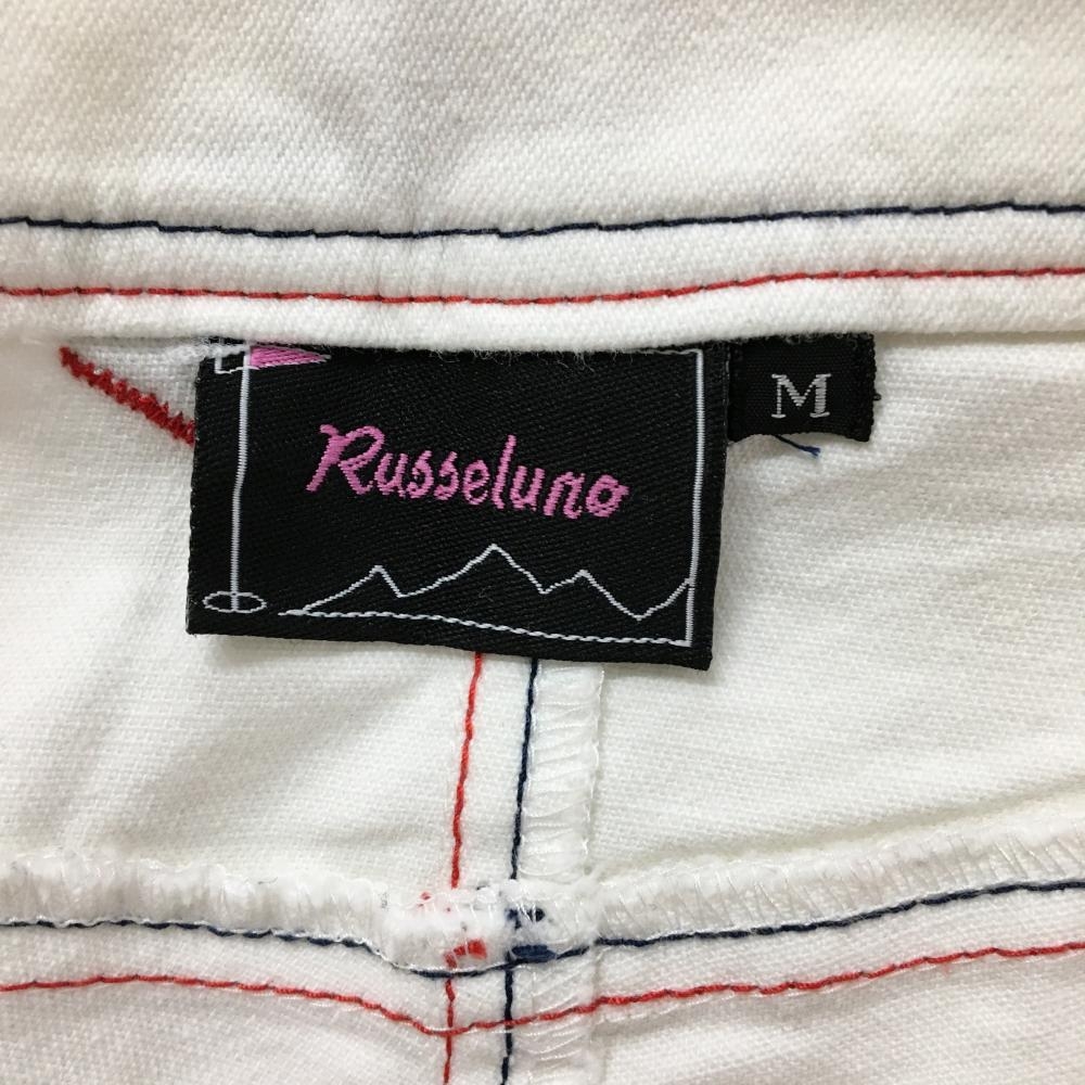 ラッセルノ ショートパンツ 白 ストレッチ ステッチレッド・ネイビー レディース M ゴルフウェア RUSSELUNO