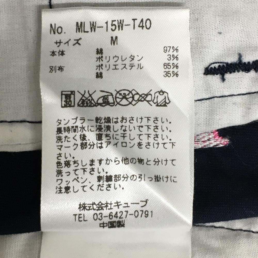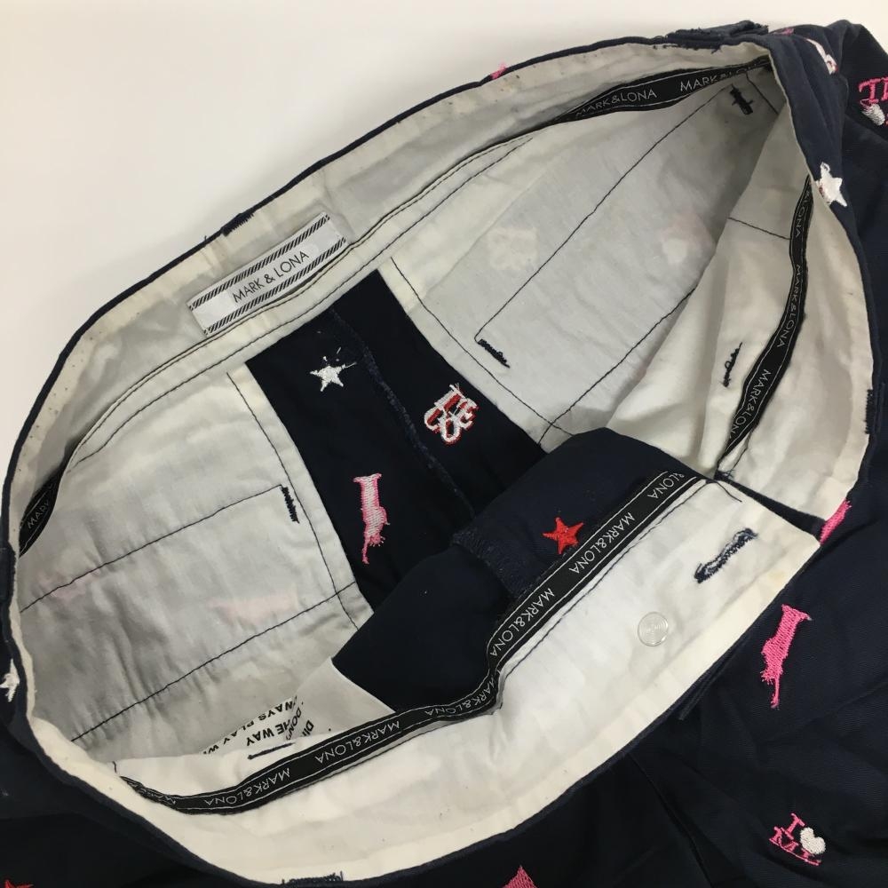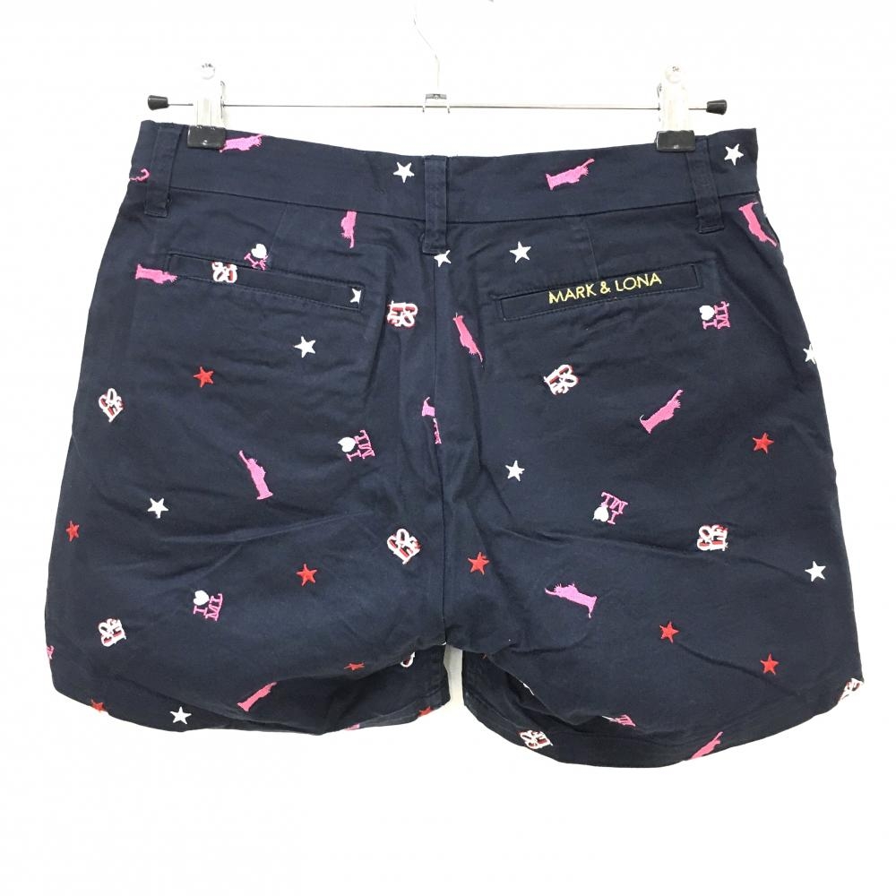マークアンドロナ ショートパンツ ネイビー×ピンク 総柄刺しゅう ストレッチ レディース M ゴルフウェア MARK&LONA