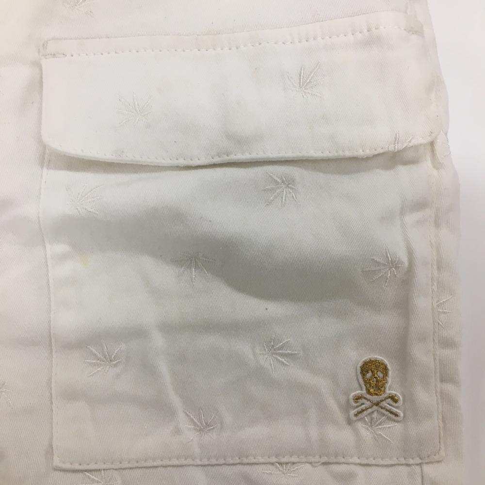 マークアンドロナ ショートパンツ 白 リーフ柄刺しゅう ストレッチ レディース M ゴルフウェア MARK&LONA