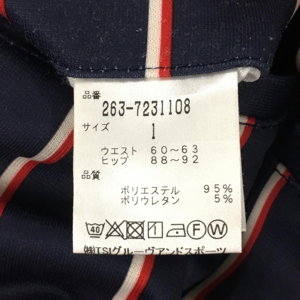 【美品】ジャックバニー パンツ ネイビー×白 ストライプ柄 レディース 1(M) ゴルフウェア Jack Bunny