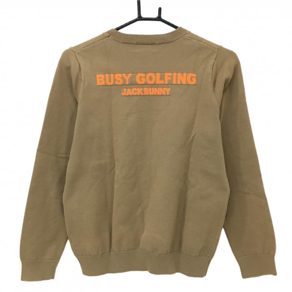 ジャックバニー セーター ブラウン×蛍光オレンジ フロント英字 ニット レディース 1(M) ゴルフウェア Jack Bunny