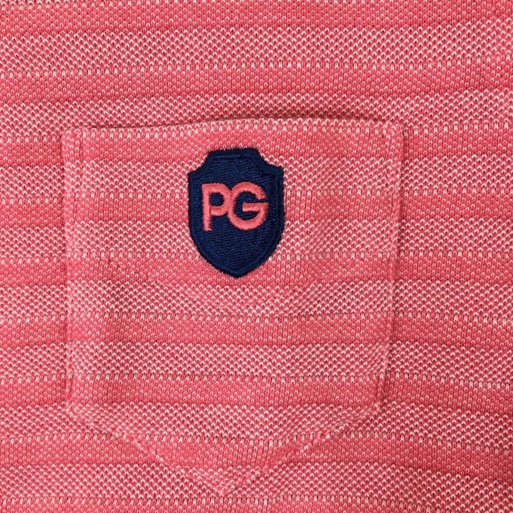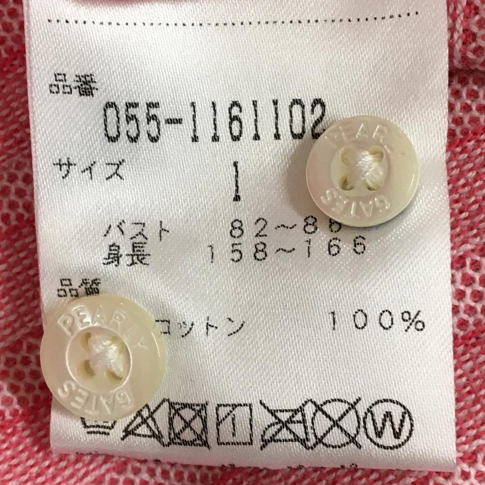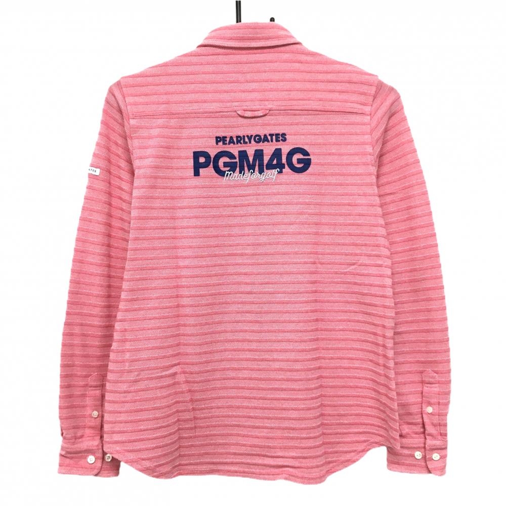【美品】パーリーゲイツ 長袖ポロシャツ ピンク ボーダー織生地 ボタンダウン レディース 1(M) ゴルフウェア PEARLY GATES