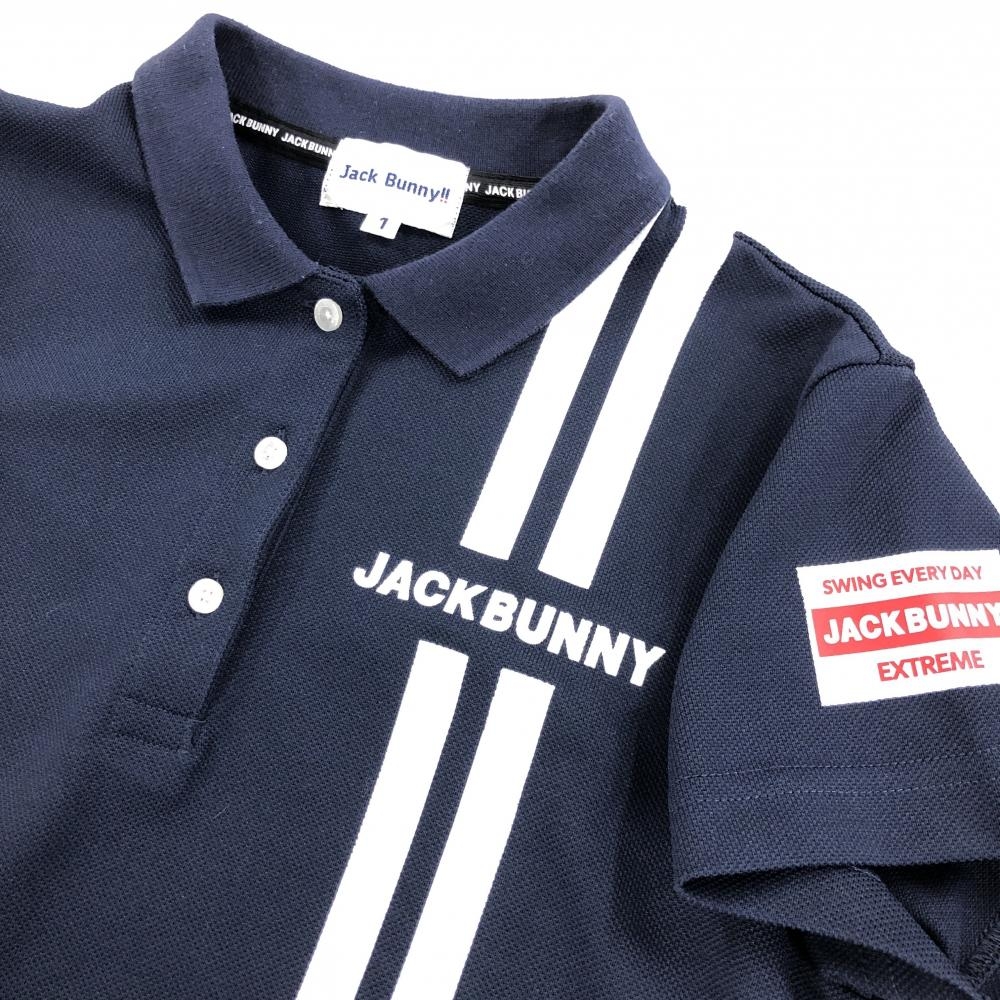 ジャックバニー 半袖ポロシャツ ネイビー×白 2ライン レディース 1(M) ゴルフウェア Jack Bunny