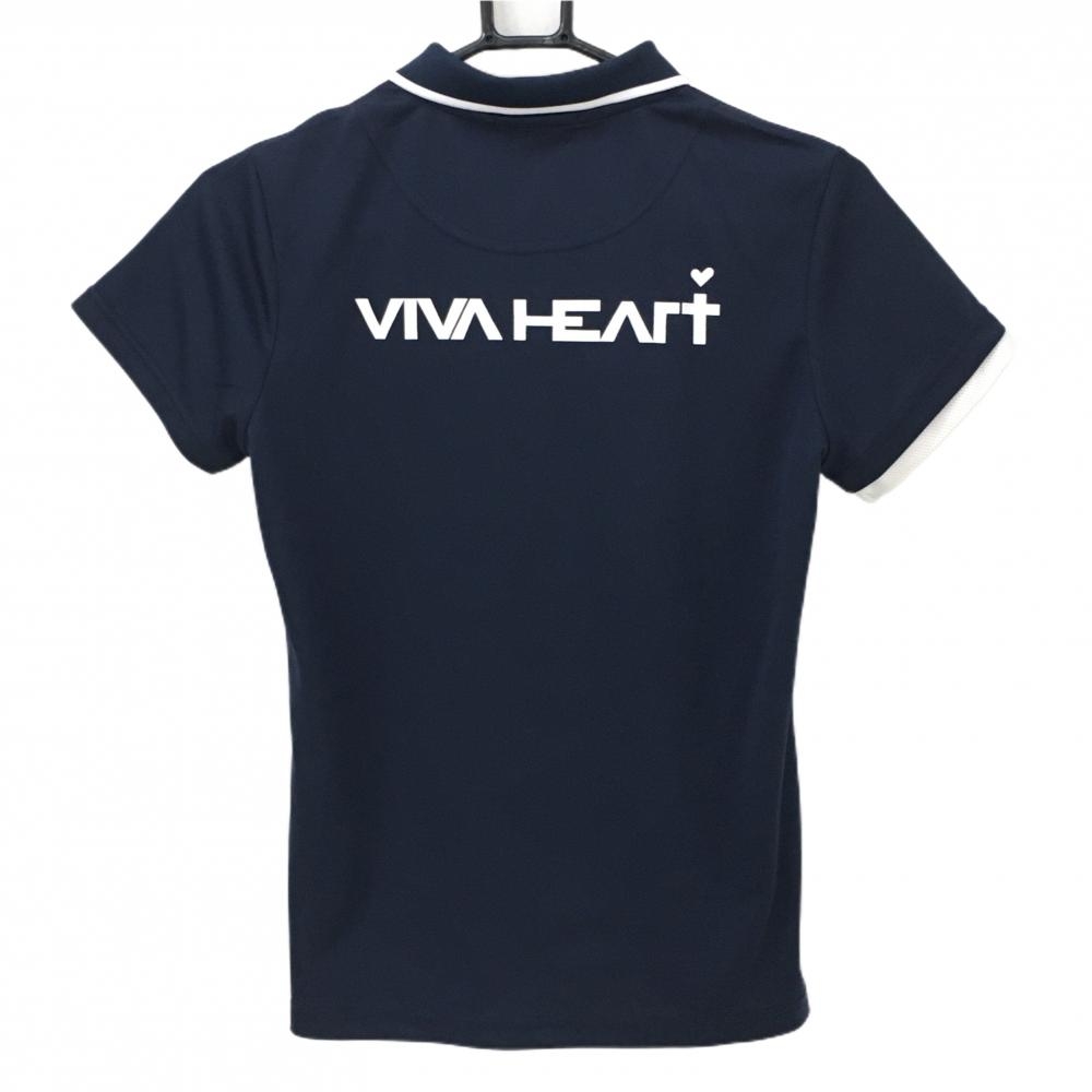 ビバハート 半袖ポロシャツ ネイビー×白 バックロゴ レディース 40(M) ゴルフウェア VIVA HEART