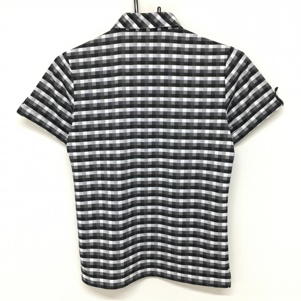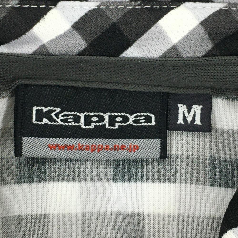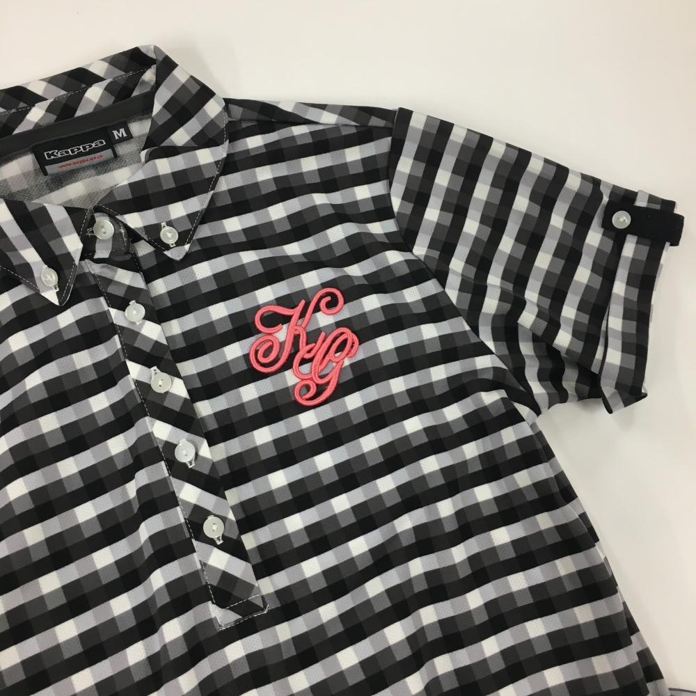 【超美品】カッパ 半袖ポロシャツ 黒×白 チェック柄 刺しゅうピンク レディース M ゴルフウェア Kappa