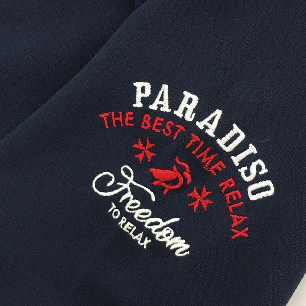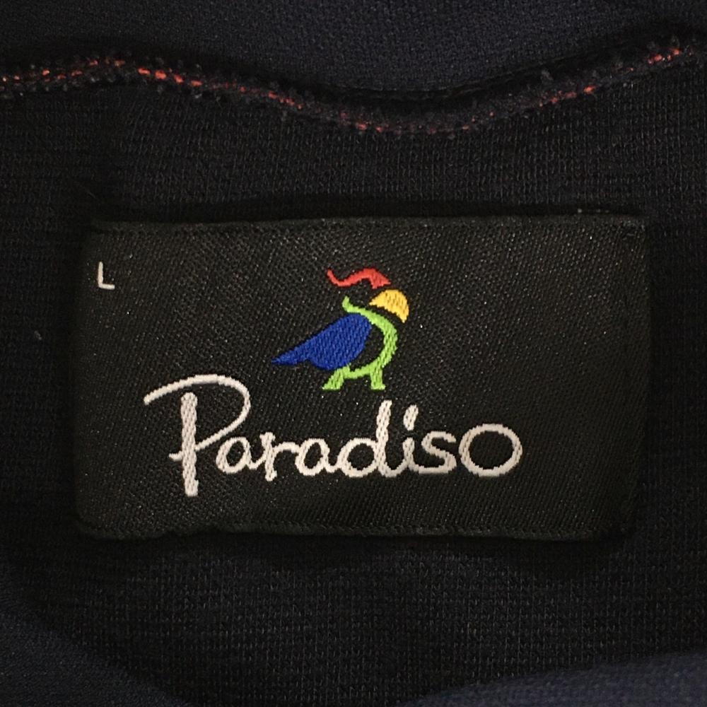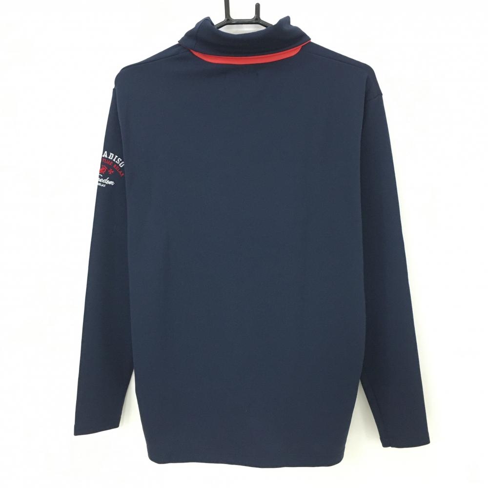 【美品】パラディーゾ 長袖ハイネックシャツ ネイビー ネック裏レッド系 ロゴ刺しゅう メンズ L ゴルフウェア Paradiso