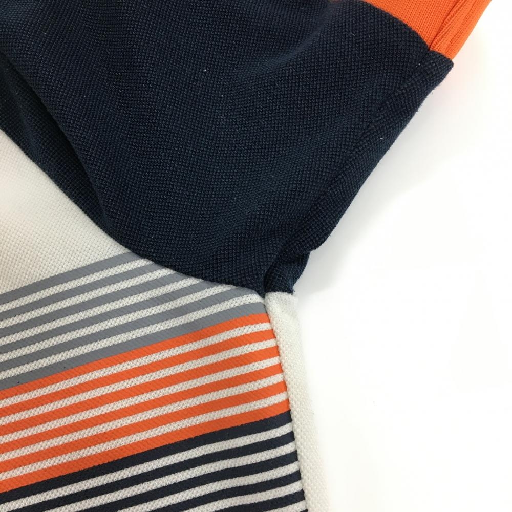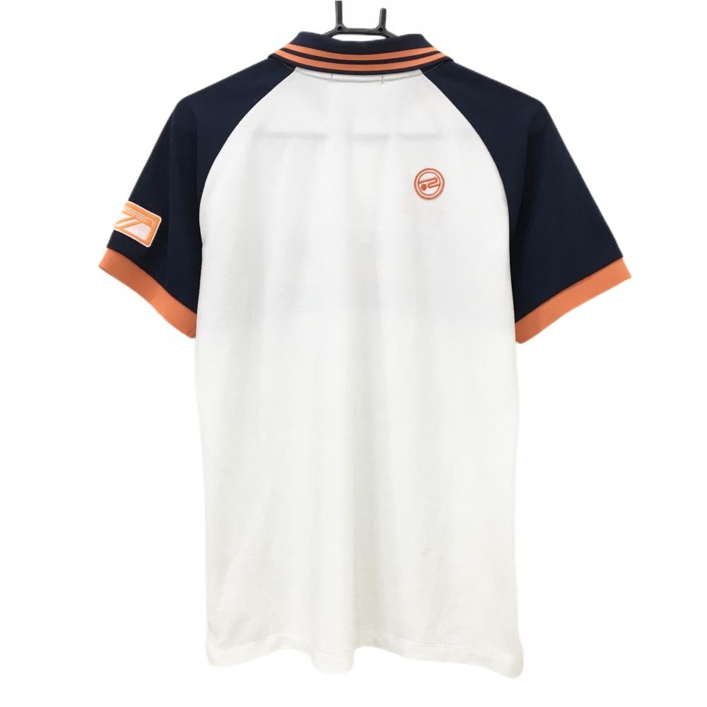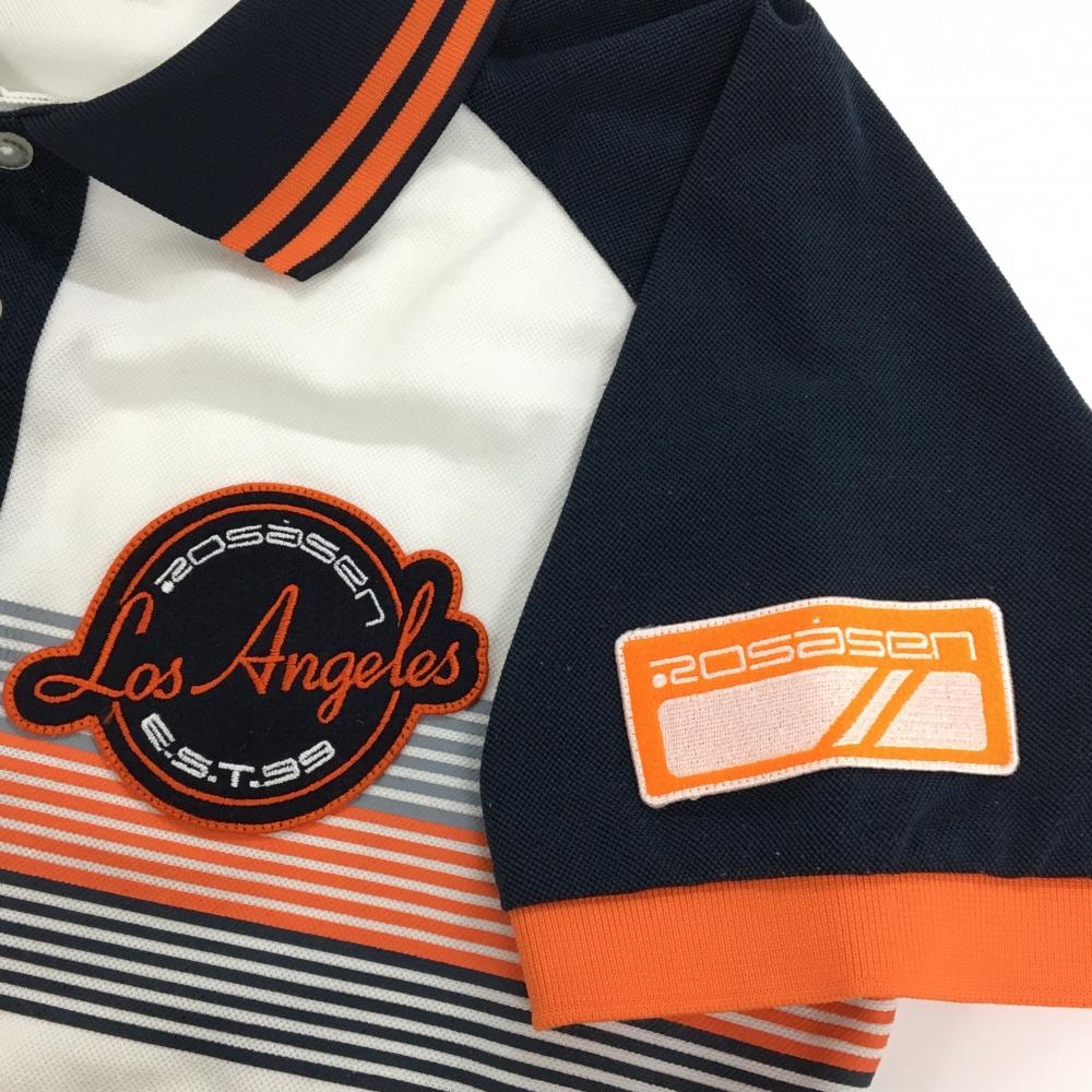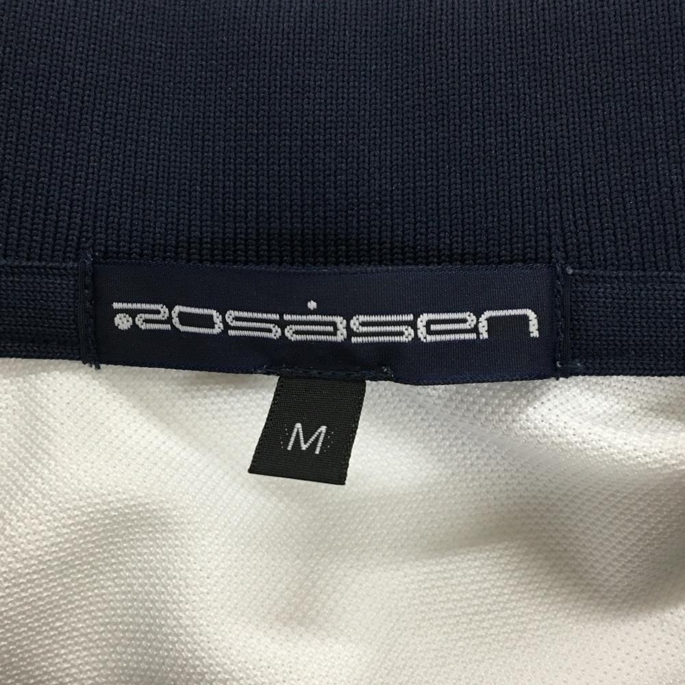 ロサーセン 半袖ポロシャツ 白×ネイビー 胸ライン ワッペン メンズ M ゴルフウェア Rosasen