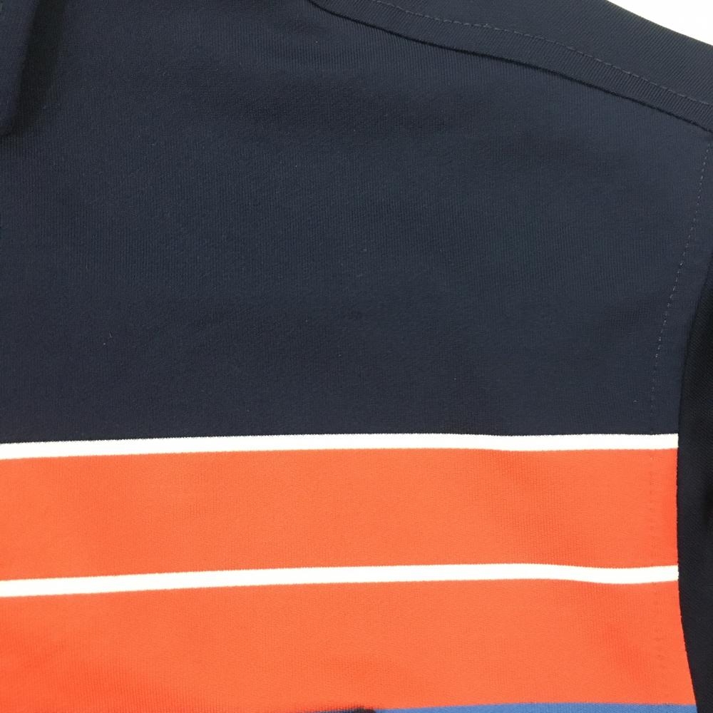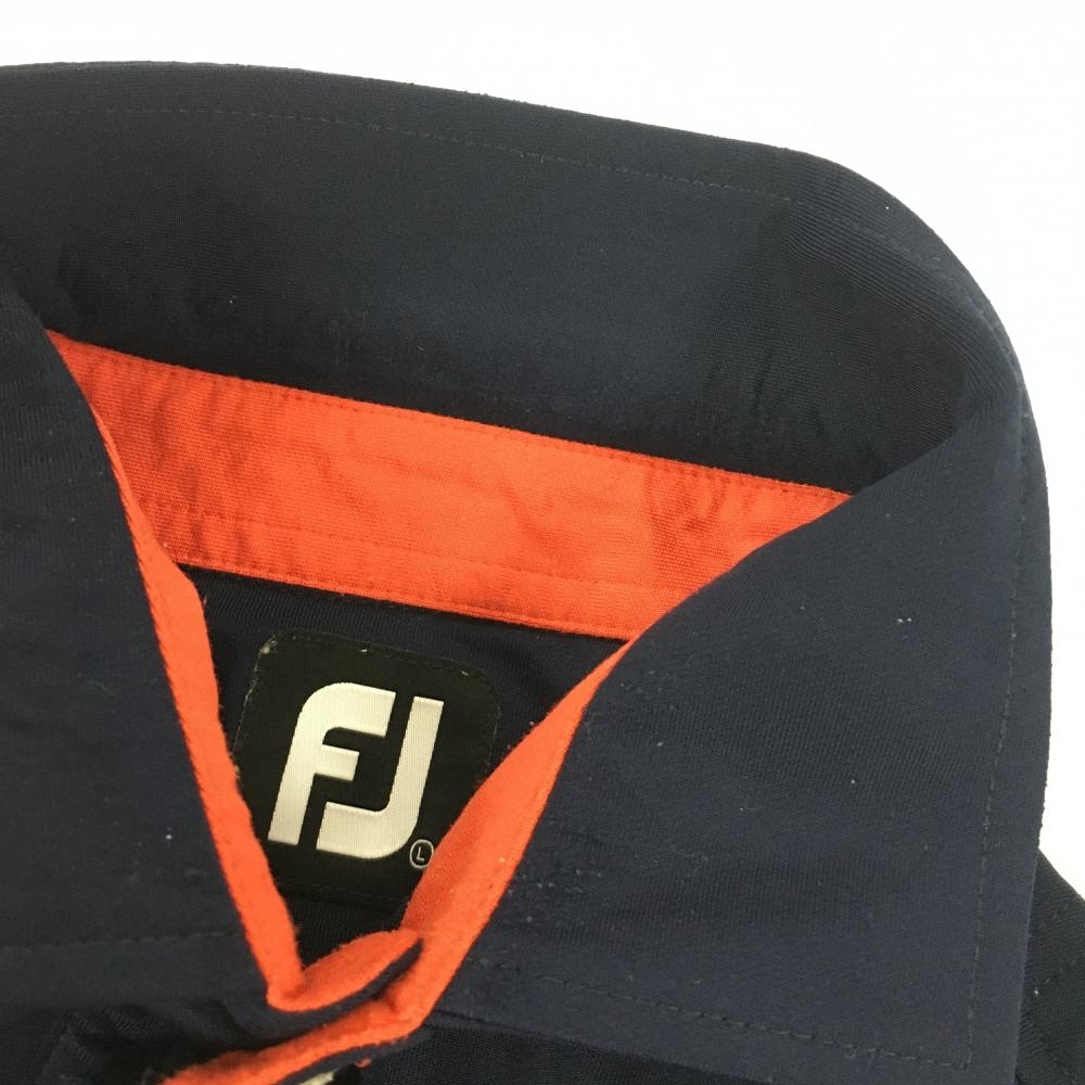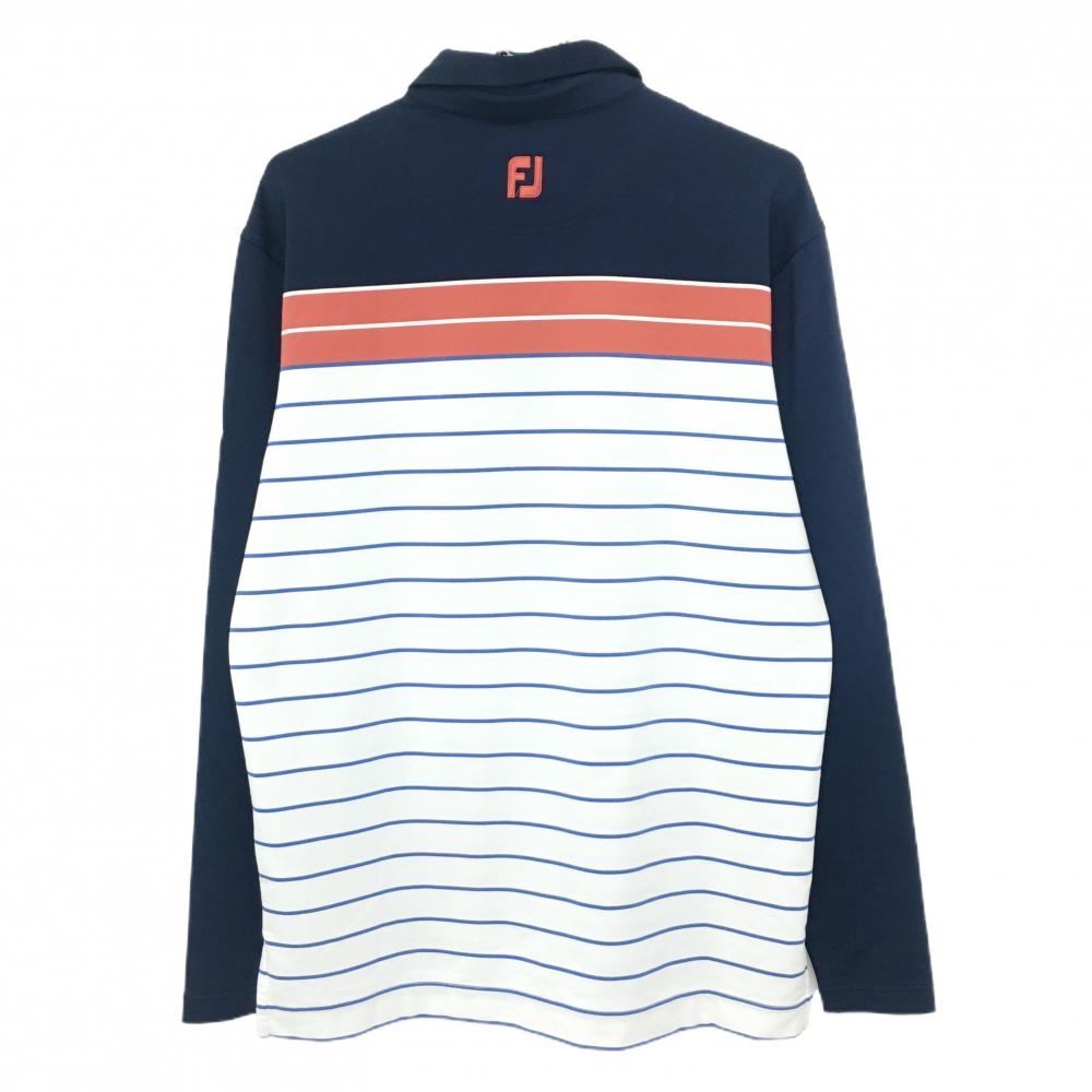フットジョイ 長袖ポロシャツ ネイビー×白 ボーダー柄 胸ポケット メンズ L ゴルフウェア FootJoy