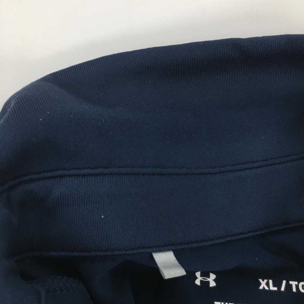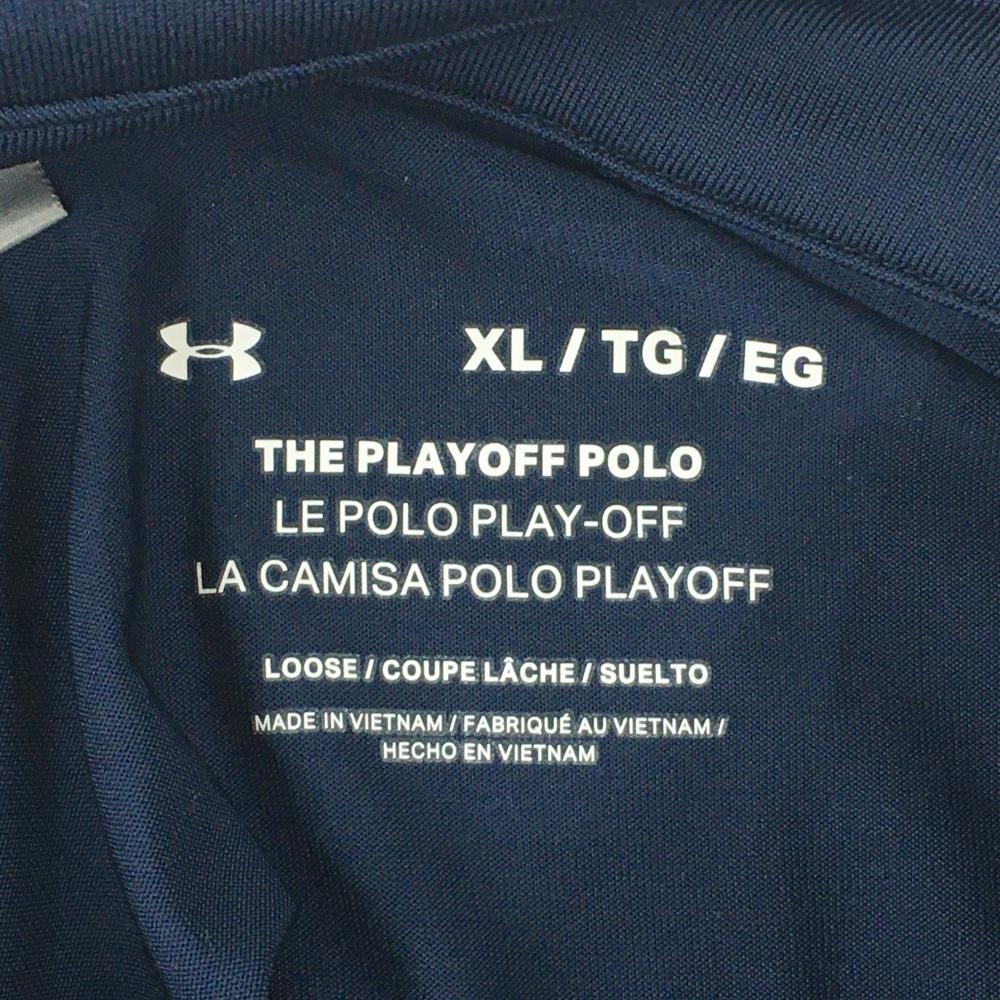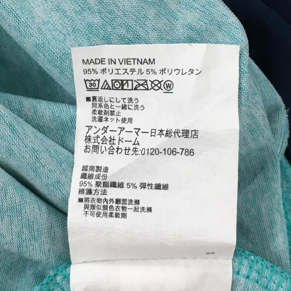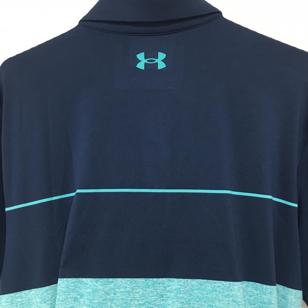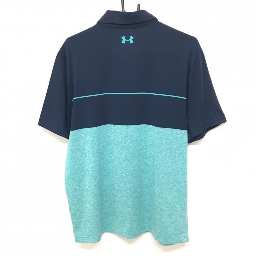 アンダーアーマー 半袖ポロシャツ ネイビー×エメラルドグリーン ロゴプリント メンズ XL ゴルフウェア UNDER ARMOUR
