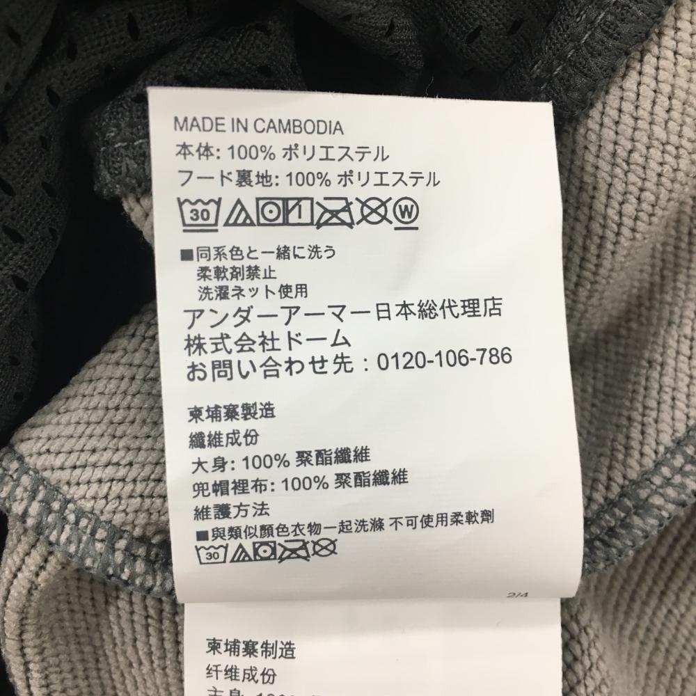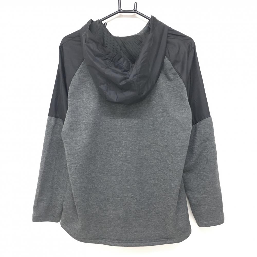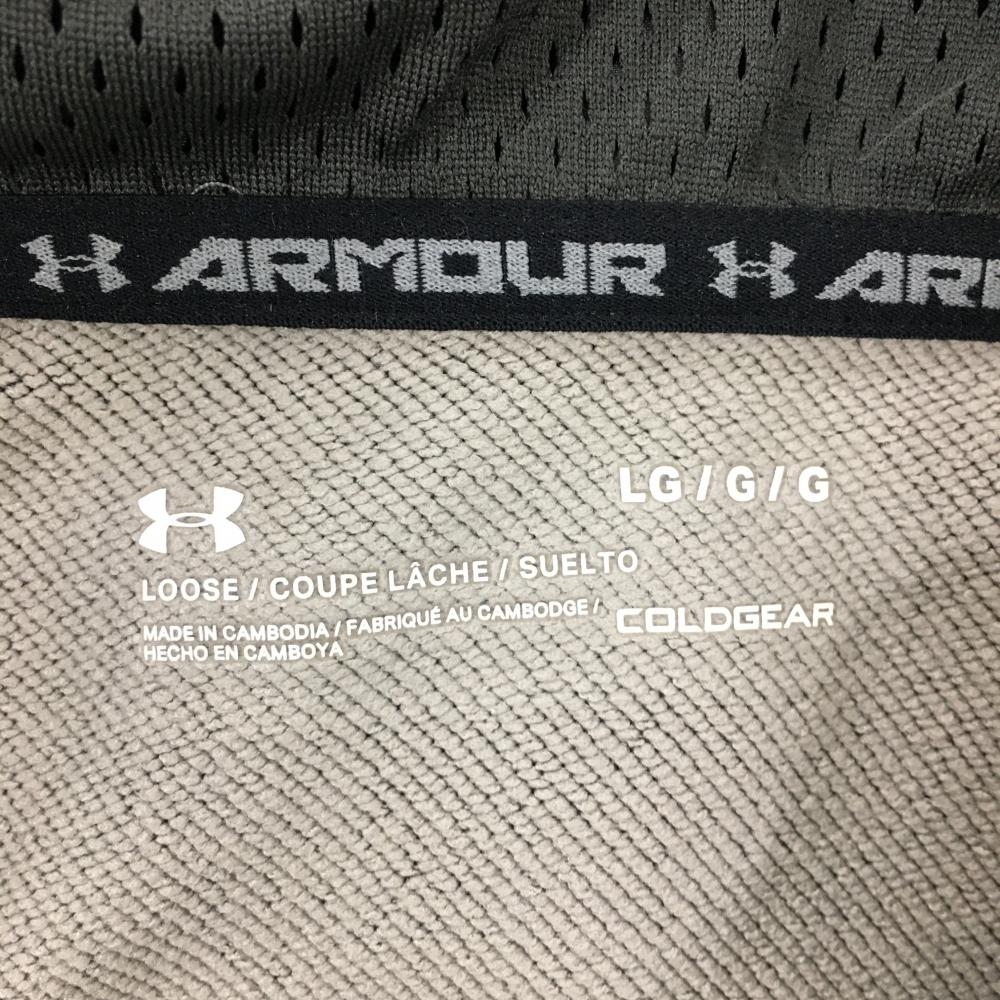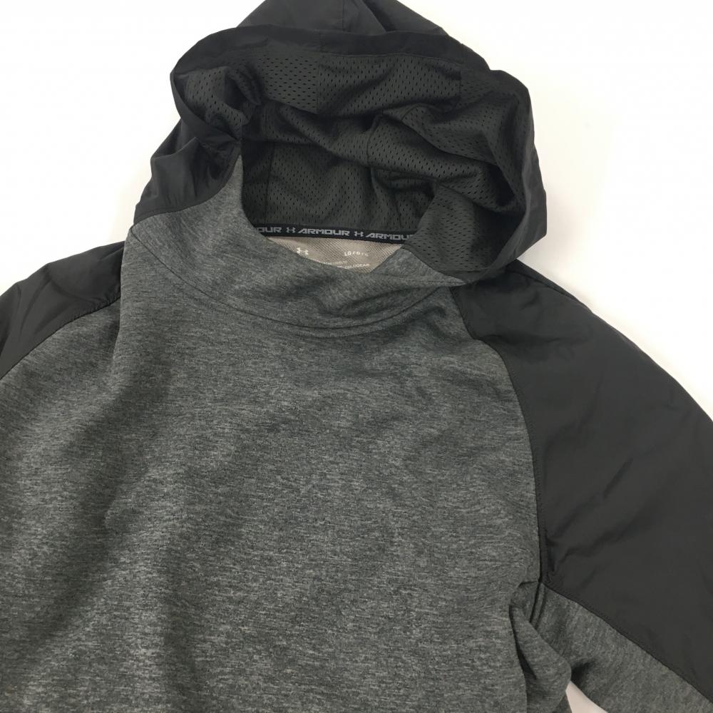 【美品】アンダーアーマー フード付き長袖シャツ 杢グレー×ダークグレー 切替 裏微起毛 メンズ LG ゴルフウェア UNDER ARMOUR