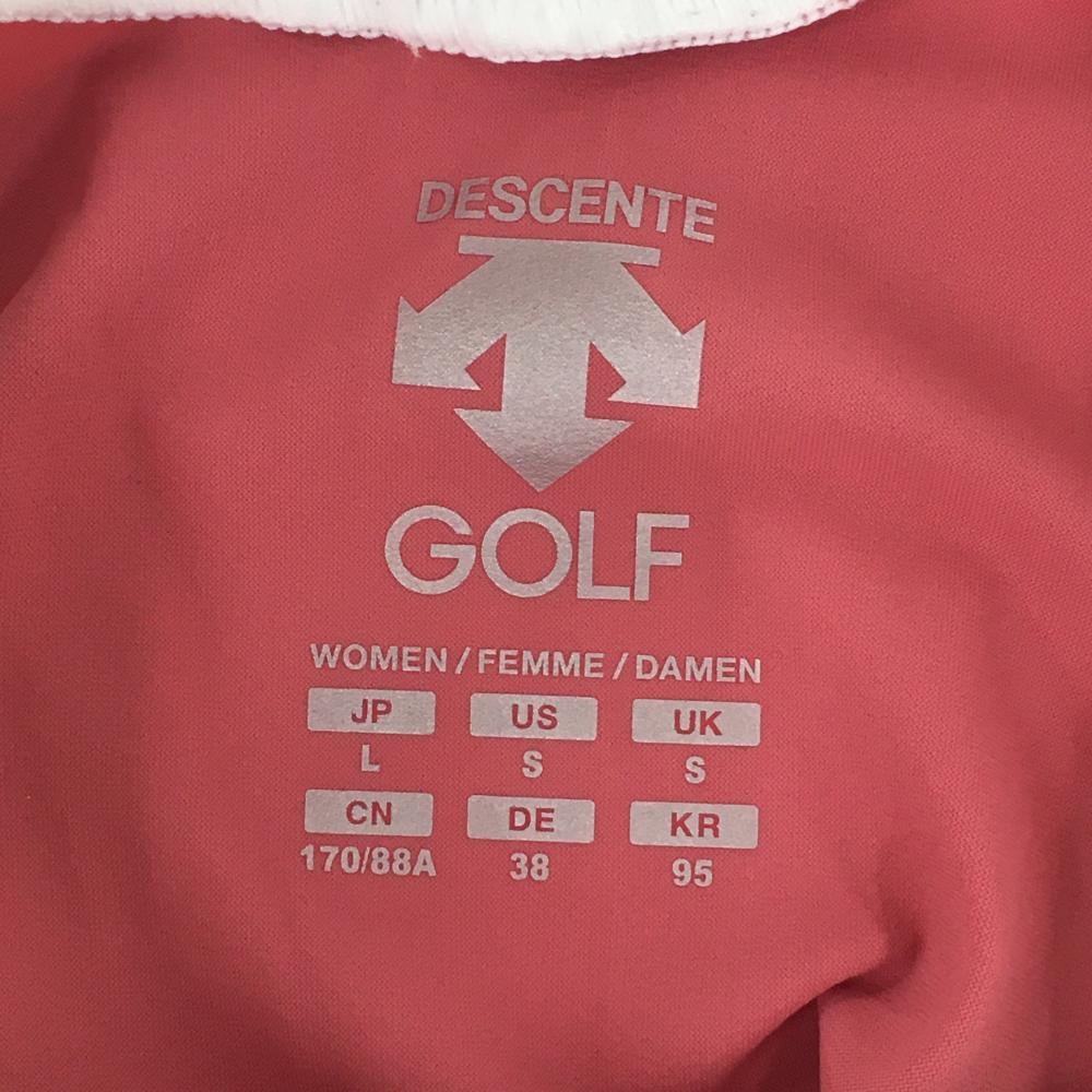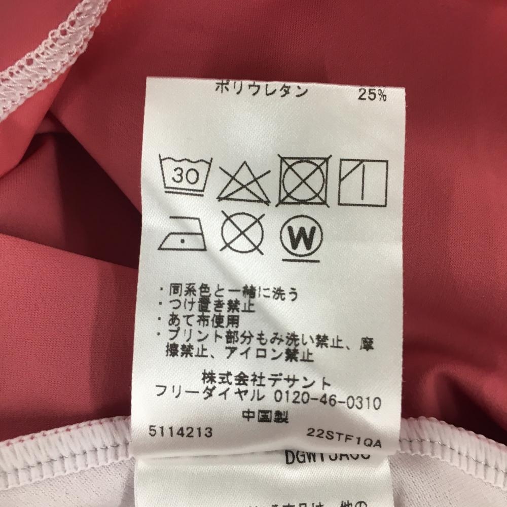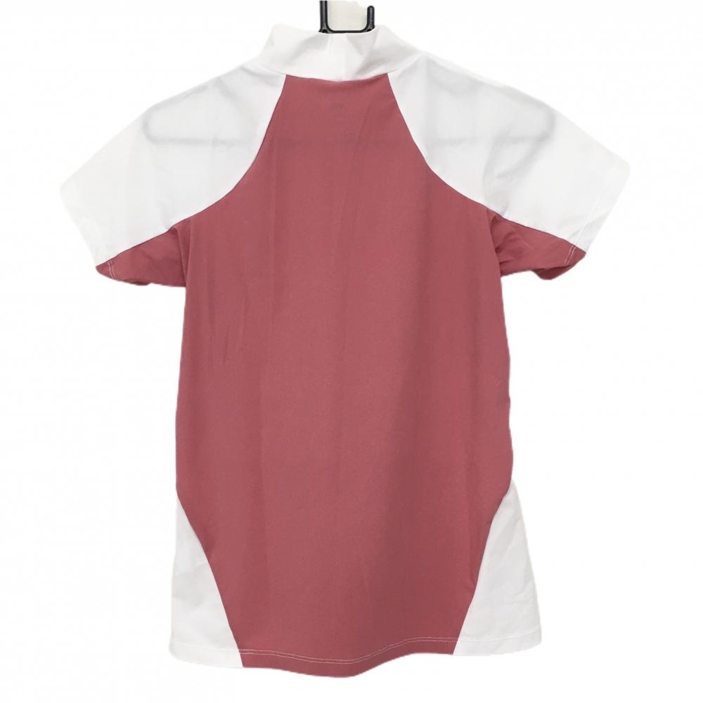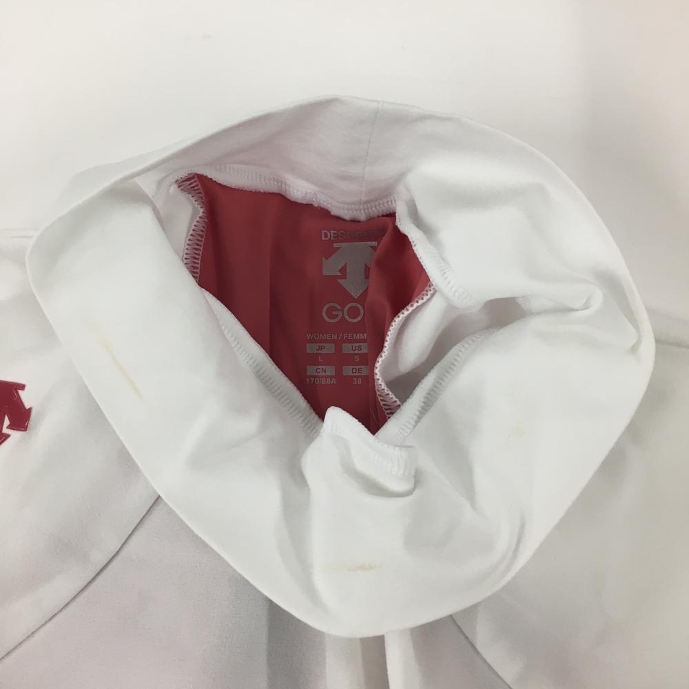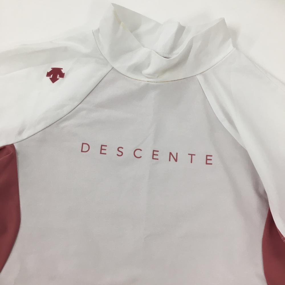 デサントゴルフ 半袖ハイネックシャツ 白×ピンク 中田英寿 ロゴプリント レディース L ゴルフウェア DESCENTE