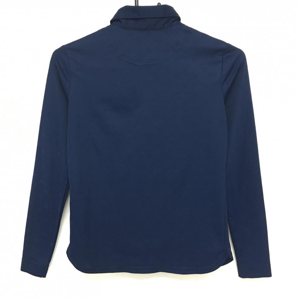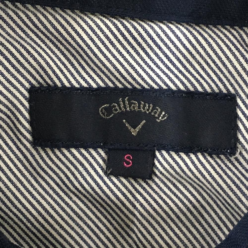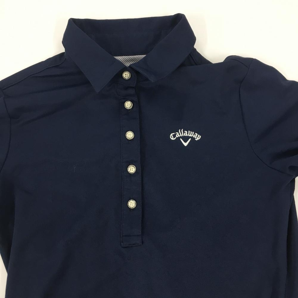 【美品】キャロウェイ 長袖ポロシャツ ネイビー クローバー地模様 ロゴ刺しゅう レディース S ゴルフウェア Callaway