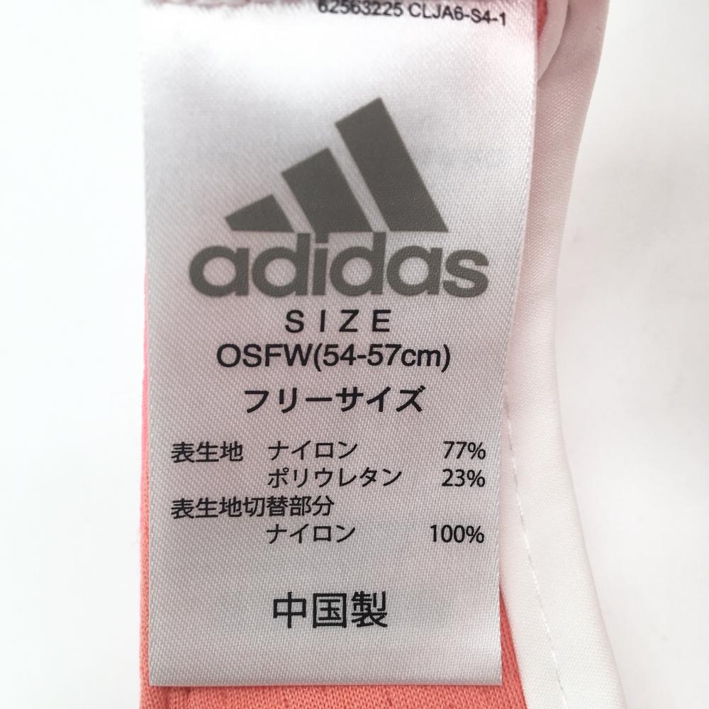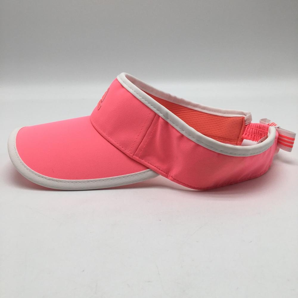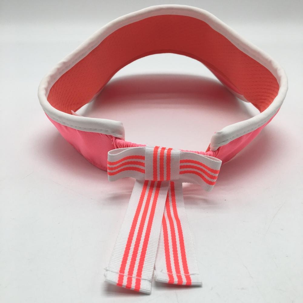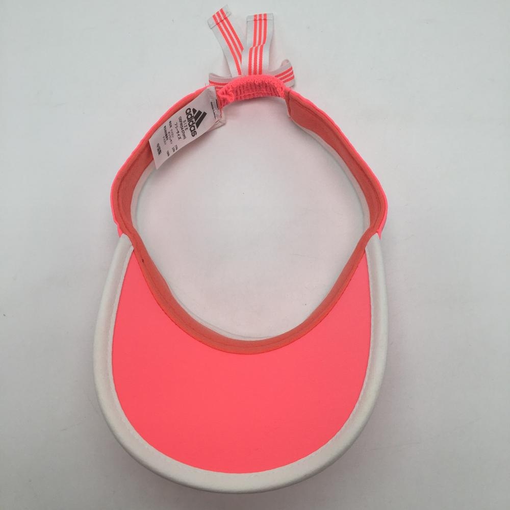 【美品】アディダス サンバイザー 蛍光ピンク×白 立体ロゴ 後ろリボン レディース OSFW(54-57cm)フリーサイズ ゴルフウェア adidas