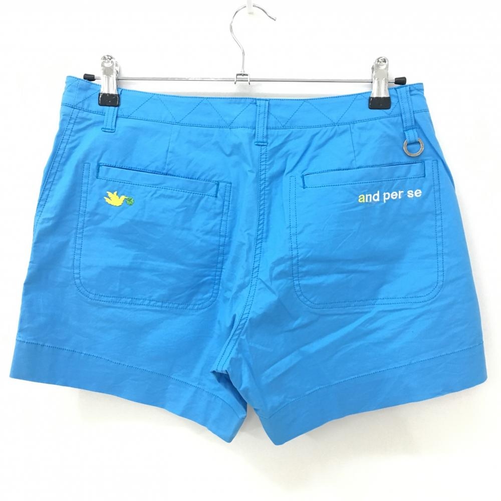 アンパスィ ショートパンツ ライトブルー クラウンワッペン ロゴ刺しゅう ストレッチ レディース L ゴルフウェア and per se