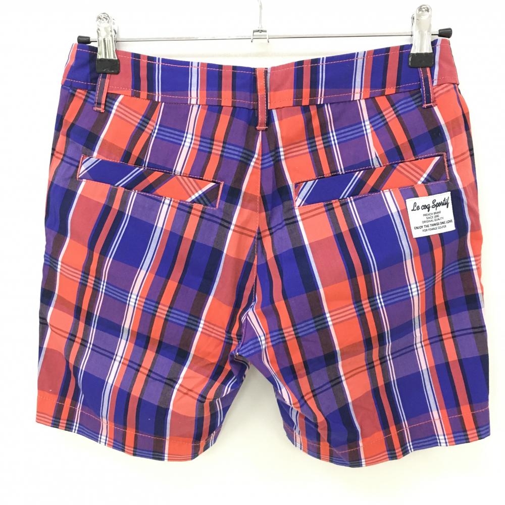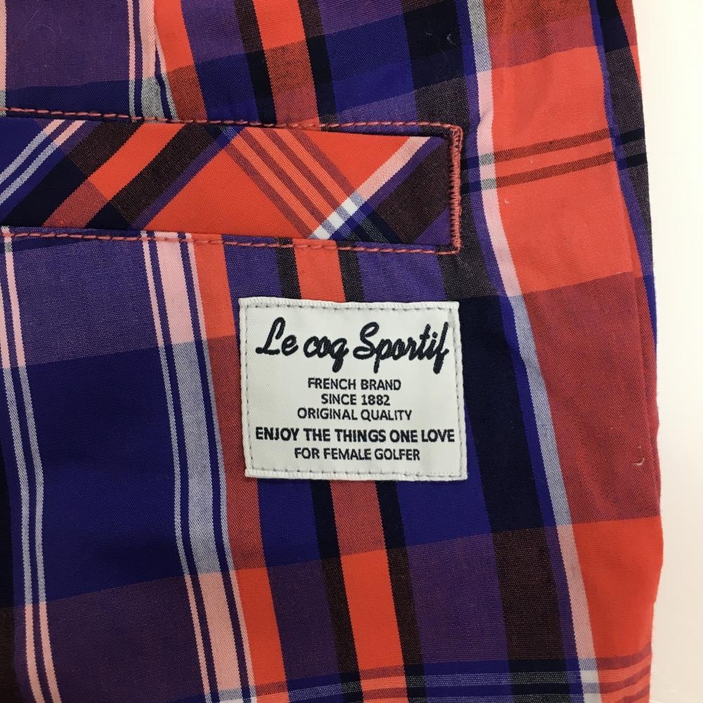 【超美品】ルコックゴルフ ショートパンツ ネイビーパープル×レッドピンク チェック柄 レディース 9 ゴルフウェア le coq sportif