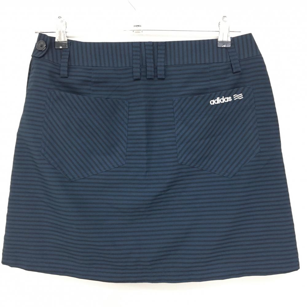 【超美品】アディダス スカート ネイビー×黒 ボーダー柄 バックロゴ インナーパンツ付き レディース M/M ゴルフウェア adidas
