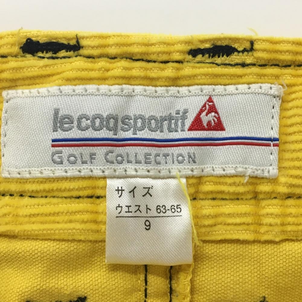 ルコックゴルフ コーデュロイスカート イエロー×ネイビー ステッチ 裾ロゴ インナーパンツ付き レディース 9 ゴルフウェア le coq sportif