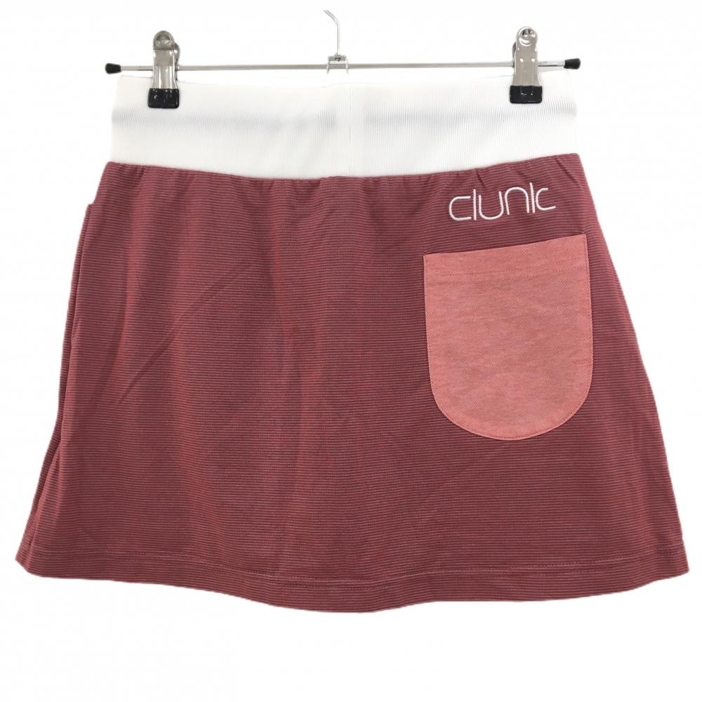 【美品】クランク スカート レッド系×白 地模様 ウエスト紐 ストレッチ 内側インナーパンツ レディース M ゴルフウェア CLUNK