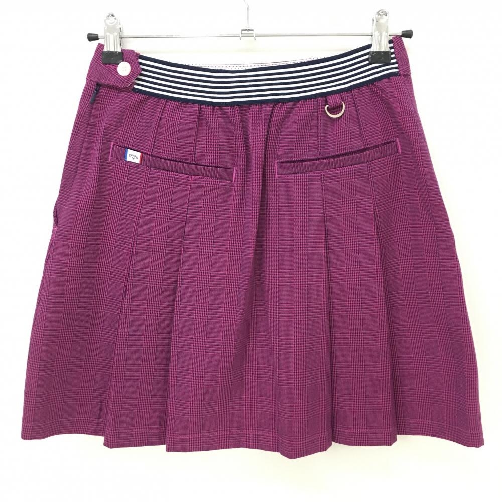 【超美品】キャロウェイ プリーツスカート ピンク×黒 グレンチェック ウエスト一部ゴム レディース S ゴルフウェア Callaway