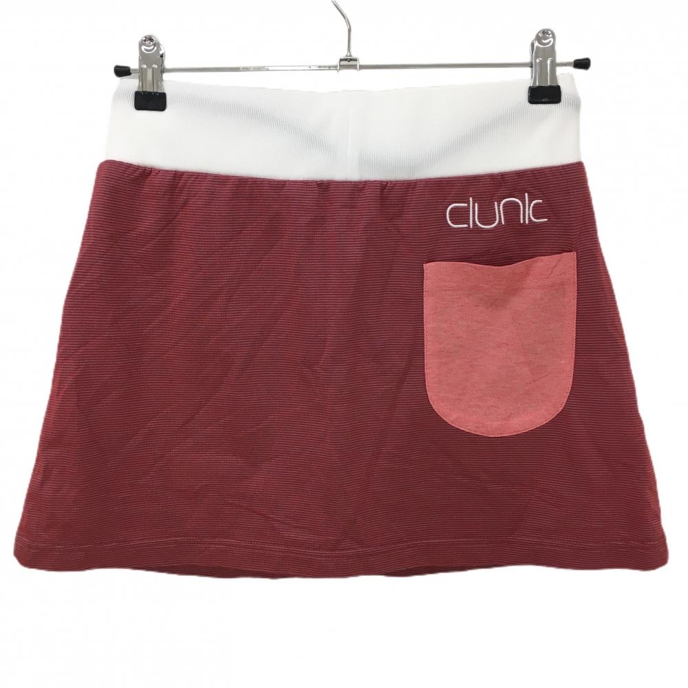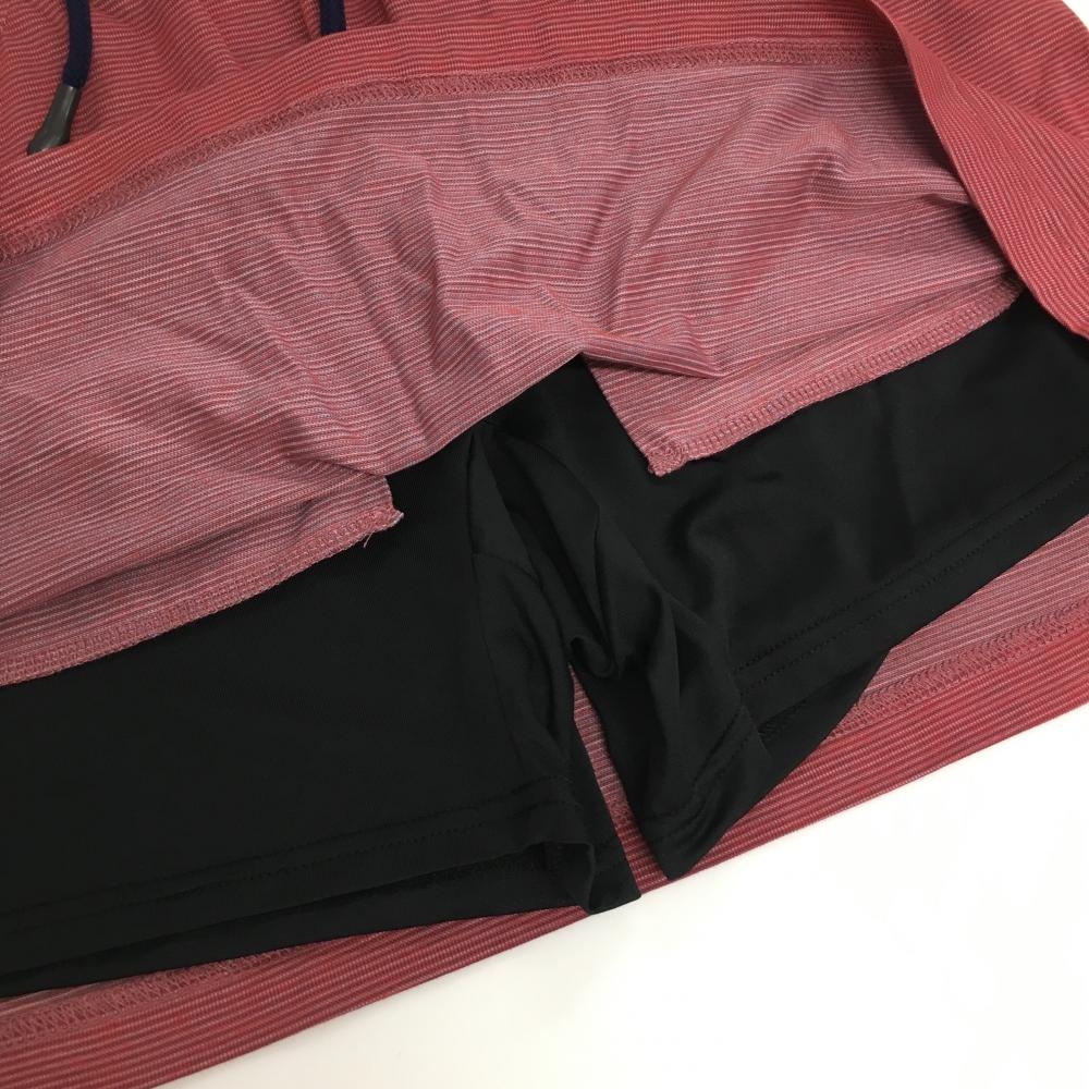 【美品】クランク スカート レッド系×白 地模様 ウエスト紐 ストレッチ 内側インナーパンツ レディース M ゴルフウェア CLUNK