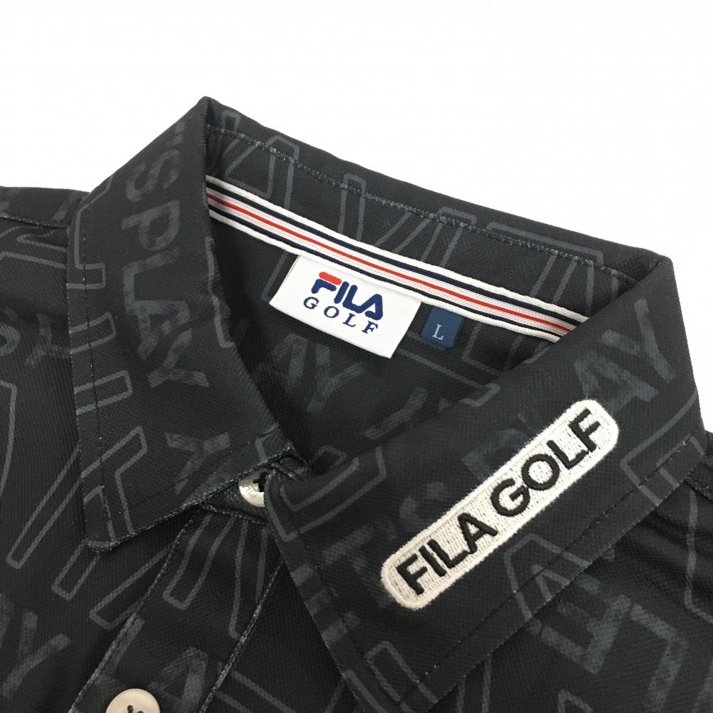 【新品】フィラゴルフ 半袖ポロシャツ ネイビー×グレー ロゴ総柄 UVカット メンズ L ゴルフウェア FILA GOLF