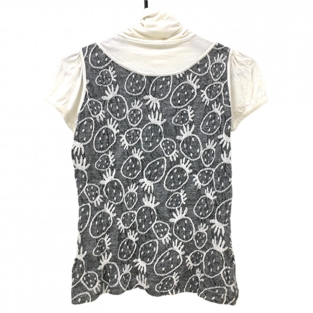 【美品】ノイジーノイジー MUスポーツ 半袖ハイネックシャツ 白×グレー レディース 38(S) ゴルフウェア M・U SPORTS