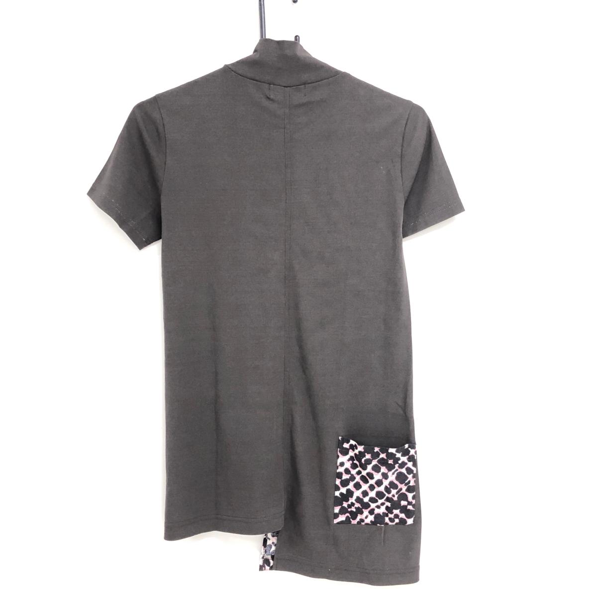 【超美品】ムニタルプ 半袖ハイネックシャツ ブラウン×白×ピンク 一部総柄 レディース 40(M) ゴルフウェア Heal Creek