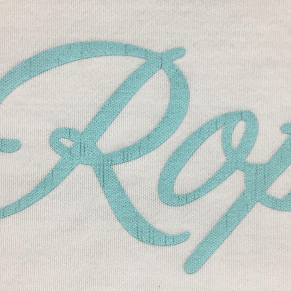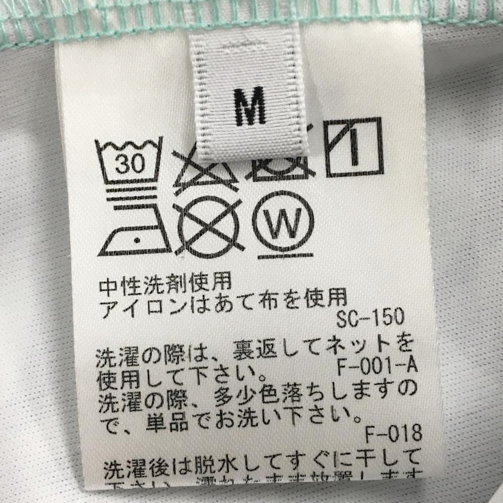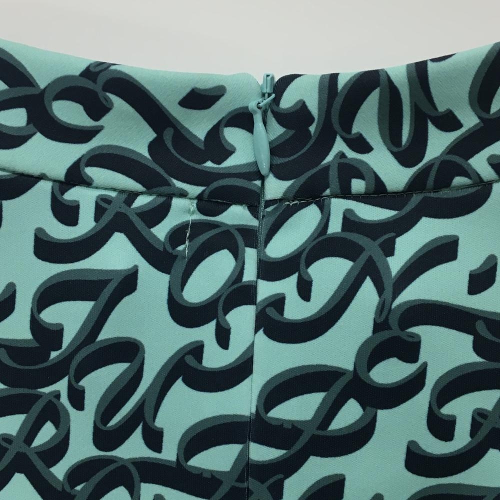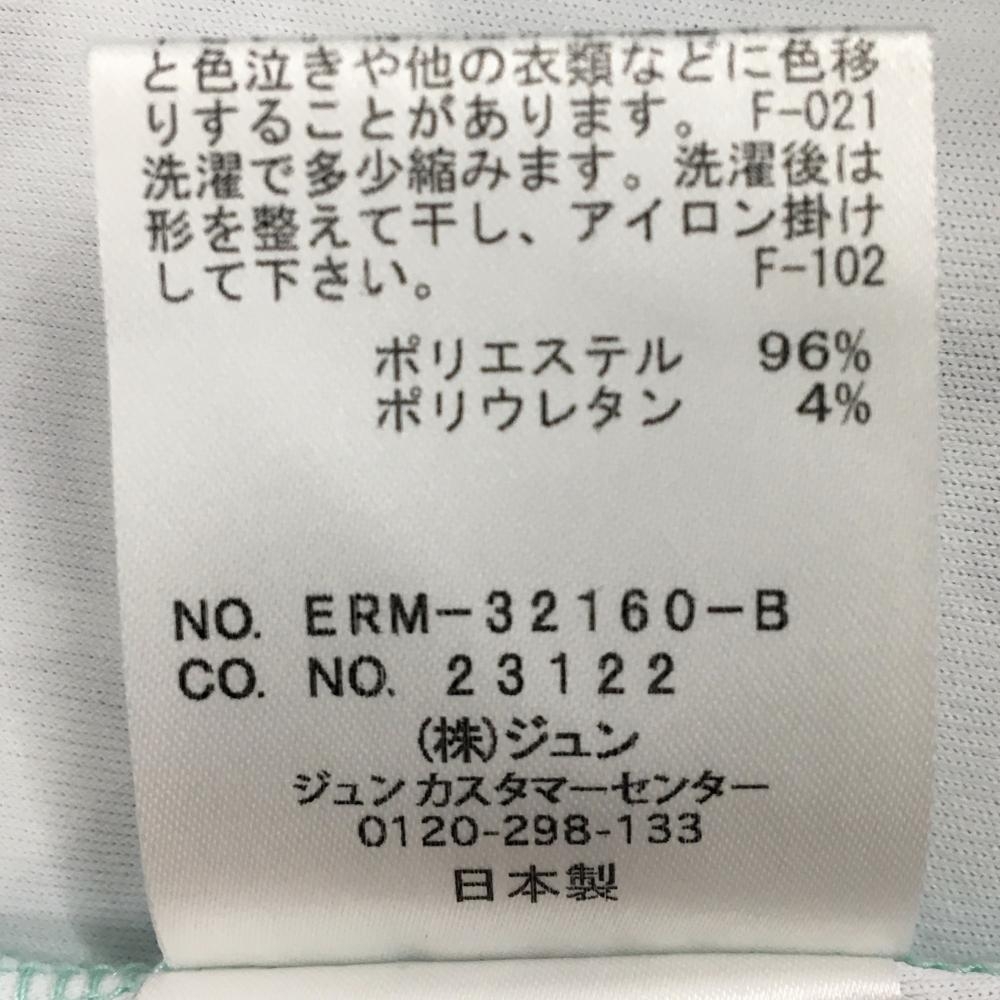 ジュンアンドロペ 半袖ハイネックシャツ ライトブルー×ネイビー ロゴ総柄 胸元切替 レディース M ゴルフウェア JUN&ROPE
