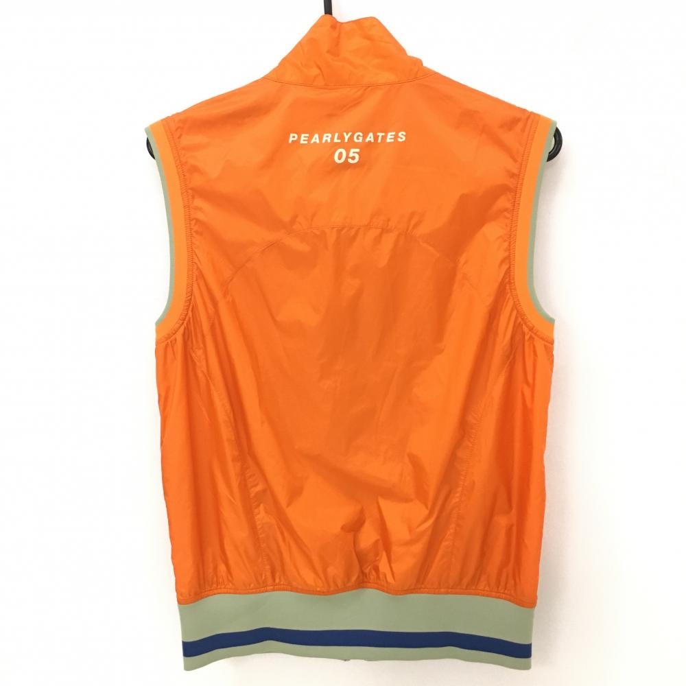 【美品】パーリーゲイツ ナイロンジップベスト オレンジ×ベージュ メッシュ裏地 裾ライン レディース 1(M) ゴルフウェア PEARLY GATES