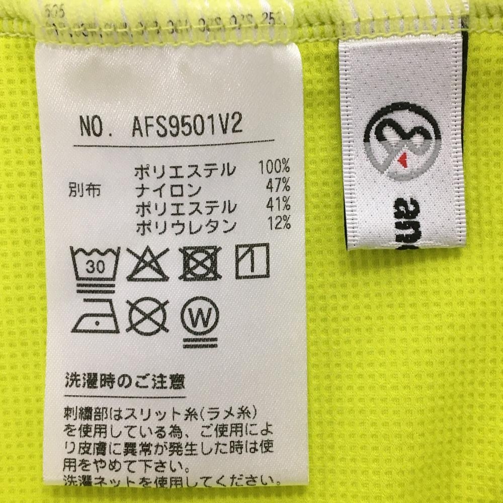 【超美品】アンパスィ 半袖ハイネックシャツ ライトグリーン×ネイビー ロゴプリント レディース M ゴルフウェア and per se