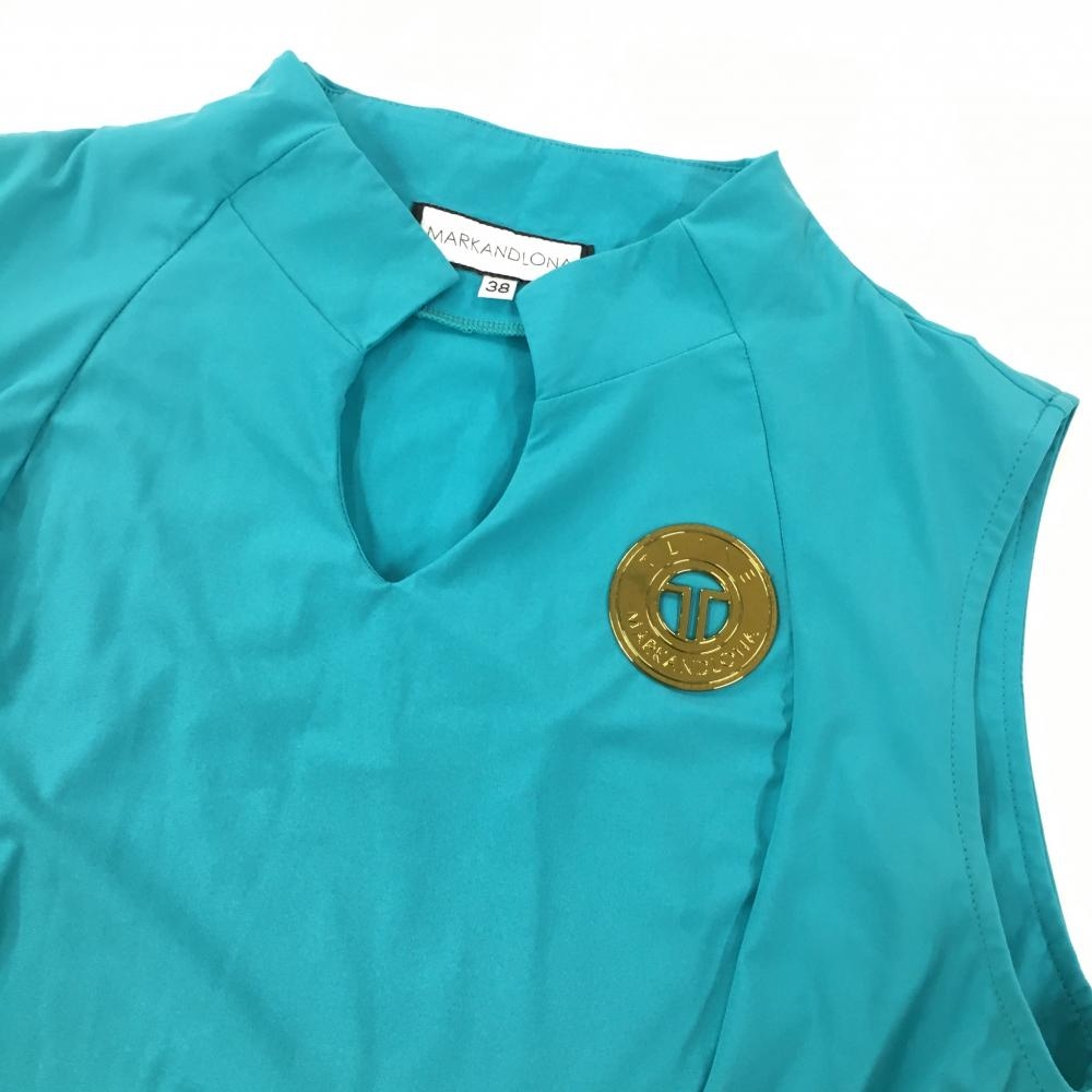 【超美品】マークアンドロナ ノースリーブハイネックワンピース グリーンブルー系 レディース 38(M) ゴルフウェア 2025年モデル MARK&LONA