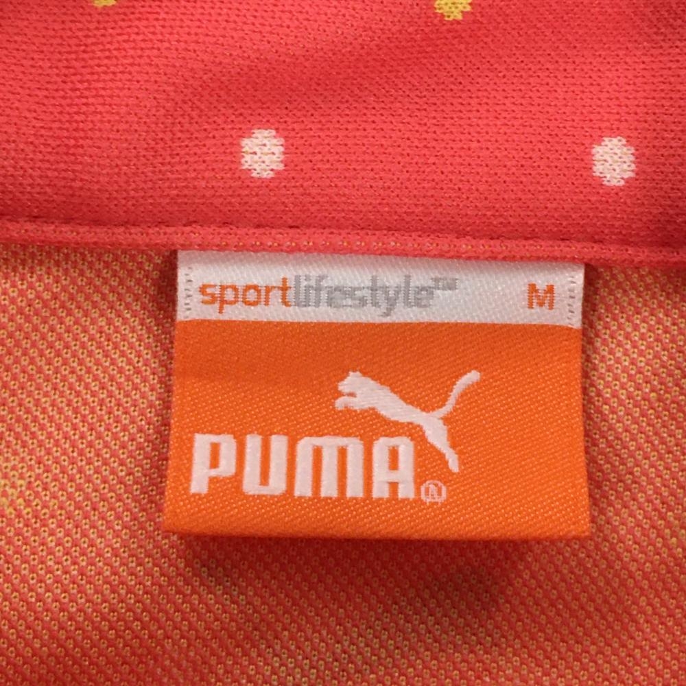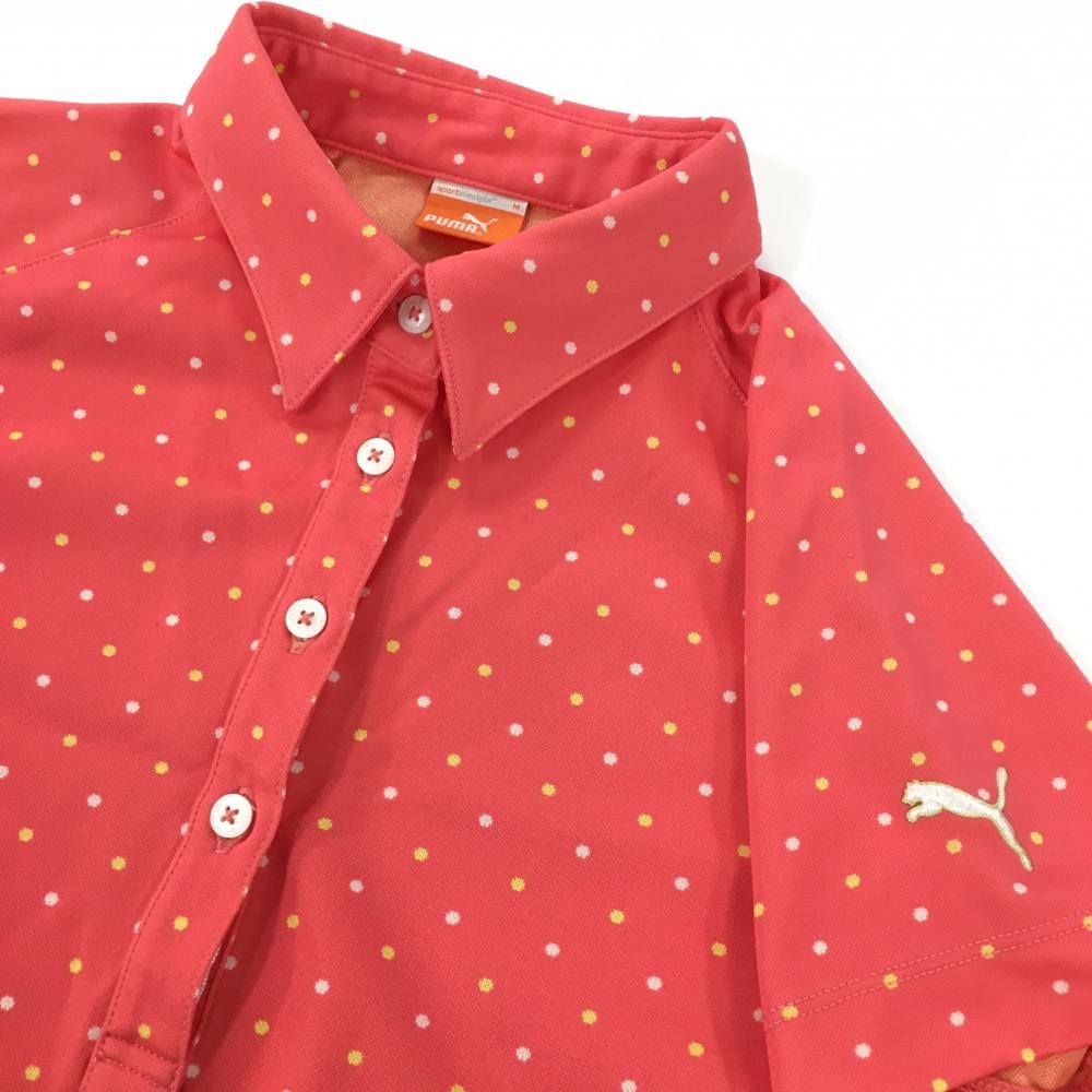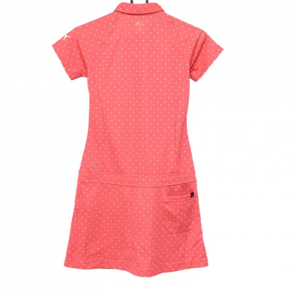 プーマ 半袖ポロワンピース ピンク×イエロー ドット柄 袖ロゴ ウエスト調節紐 レディース M ゴルフウェア PUMA