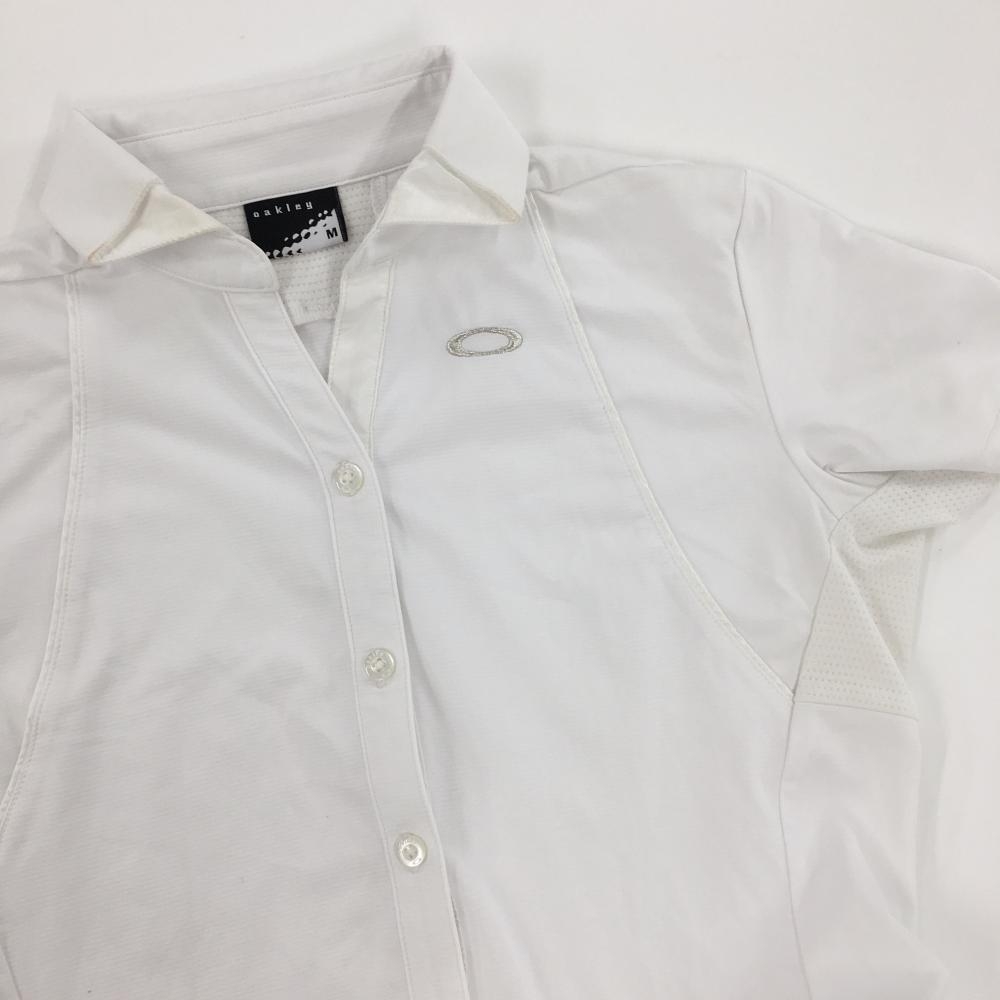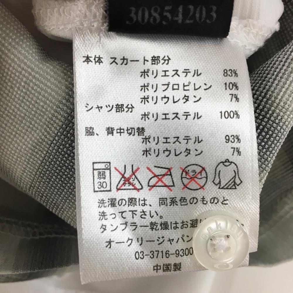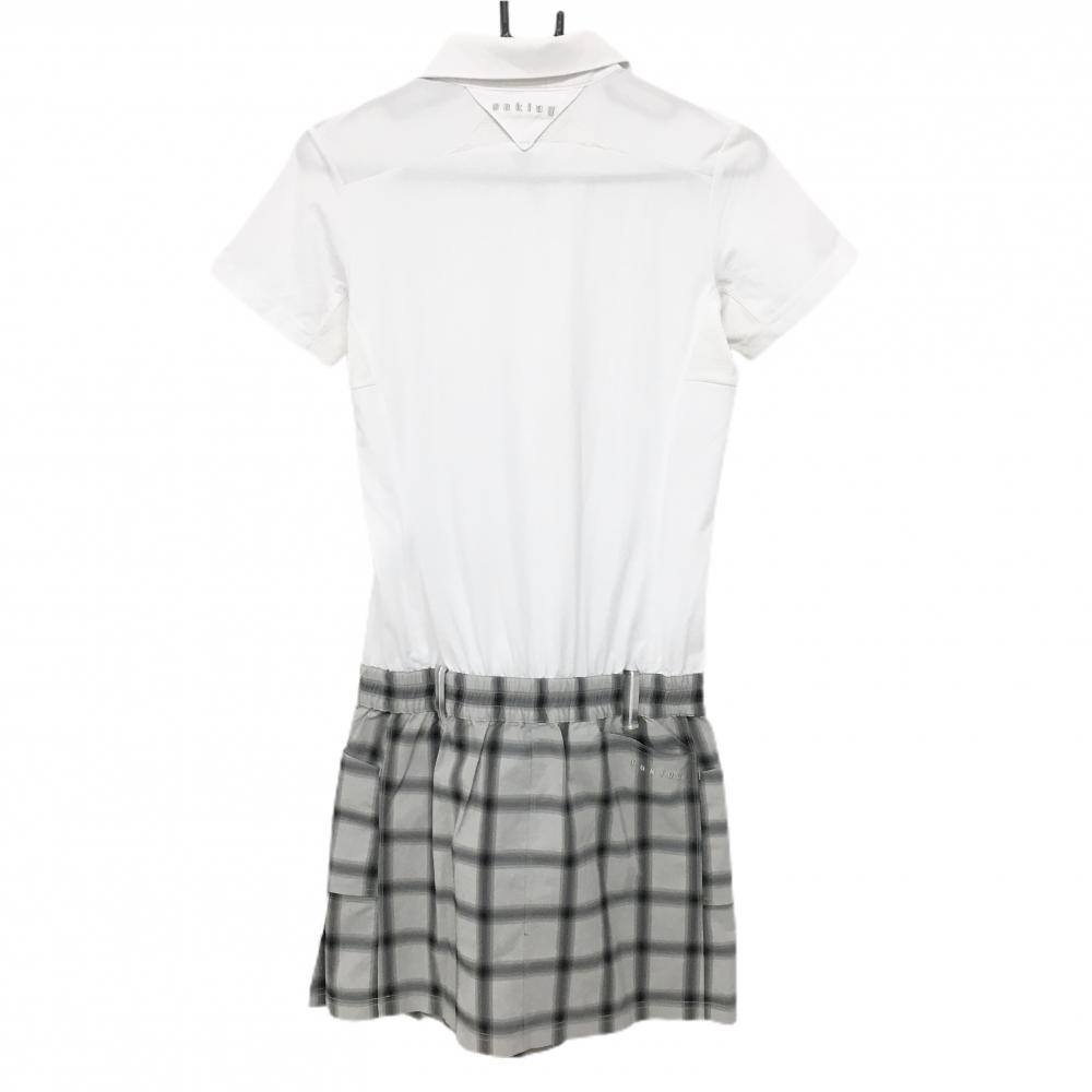 オークリー 半袖ワンピース 白×グレー スカートチェック スキッパー レディース M ゴルフウェア Oakley