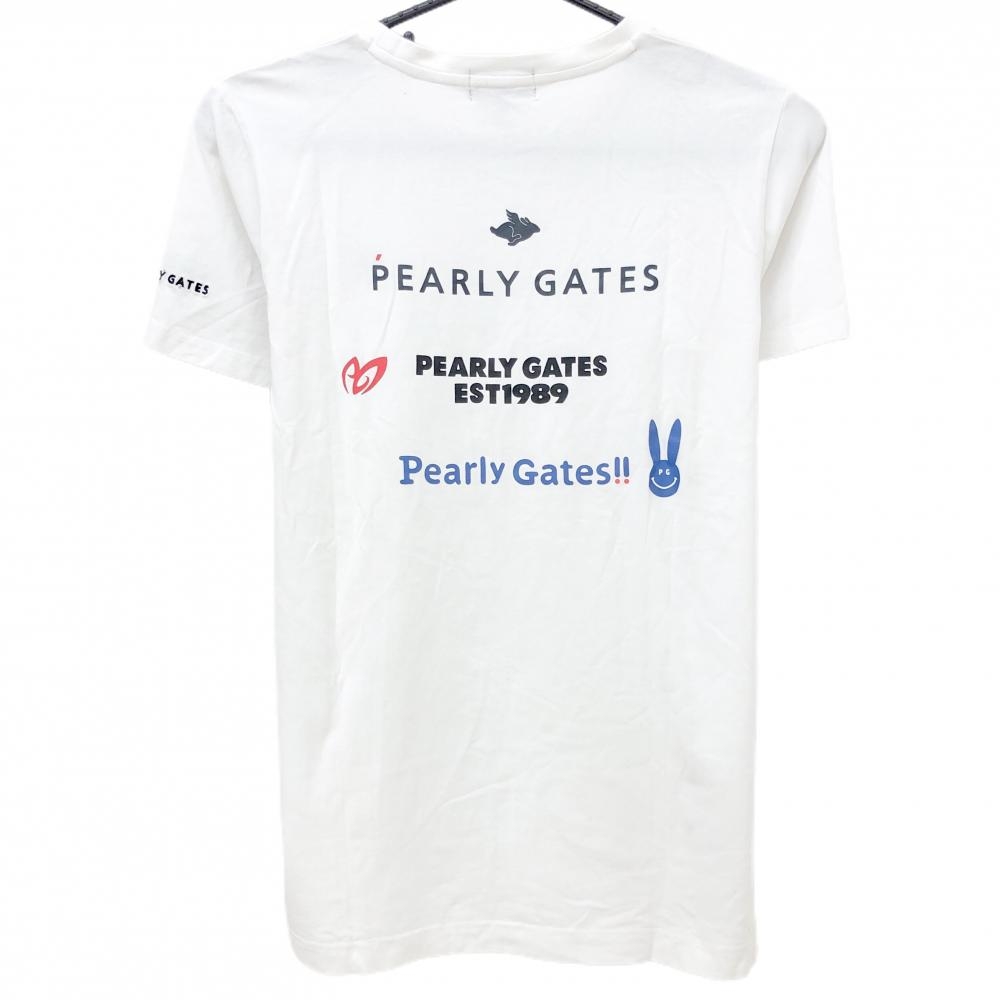 【美品】パーリーゲイツ 半袖Tシャツ 白×黒 背面ロゴ レディース 1(M) ゴルフウェア 2024年モデル PEARLY GATES