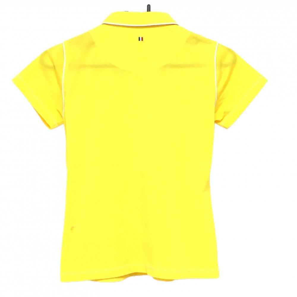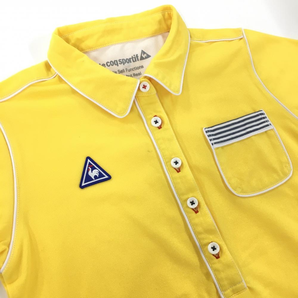 ルコックゴルフ 半袖ポロシャツ イエロー×白 胸ポケット ロゴワッペン レディース S ゴルフウェア le coq sportif