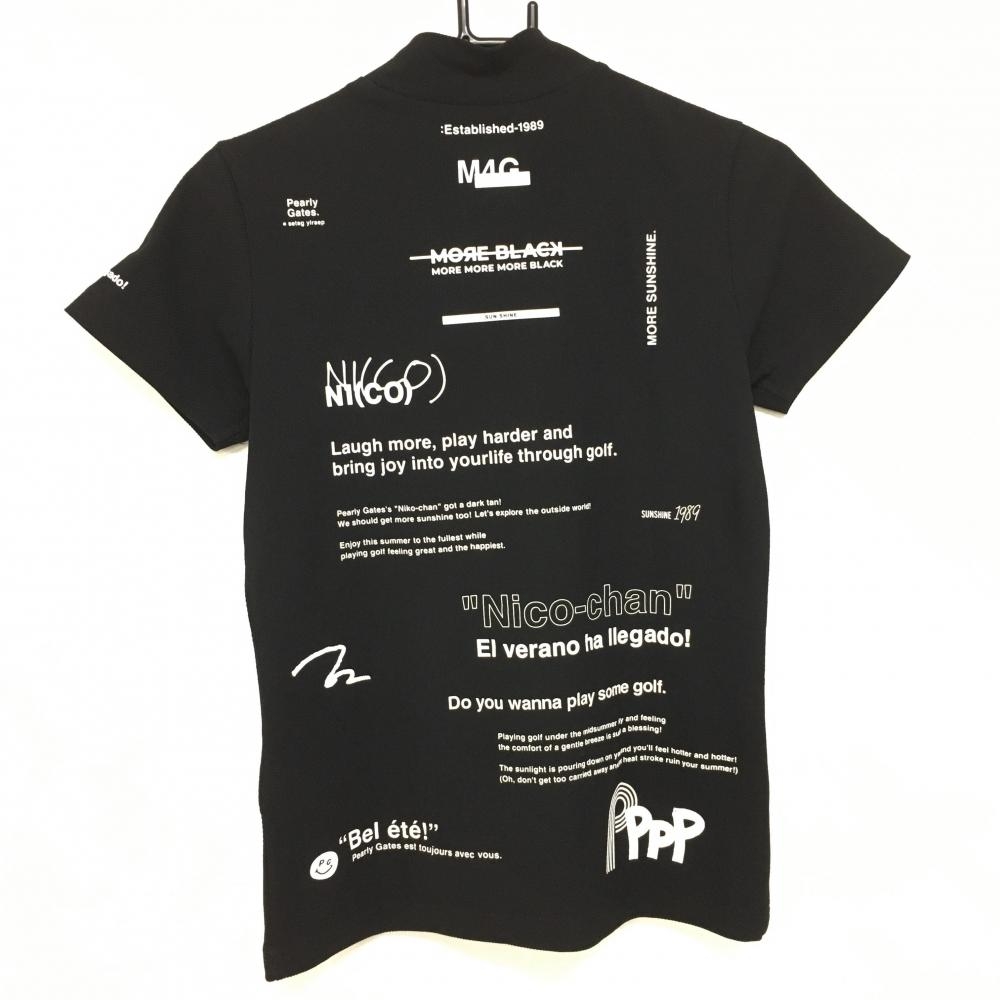 【美品】パーリーゲイツ 半袖ハイネックシャツ 黒×白 背面プリント レディース 1(M) ゴルフウェア 2024年モデル PEARLY GATES