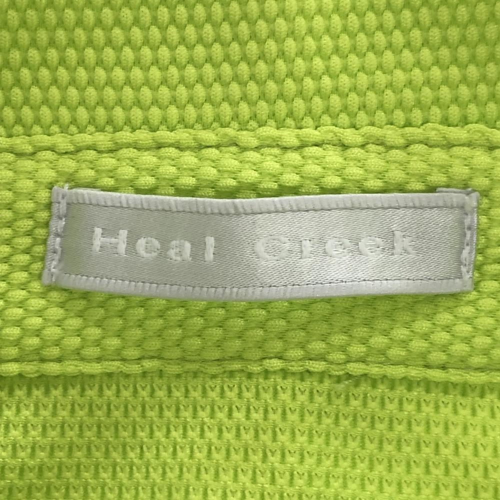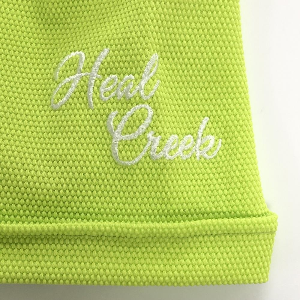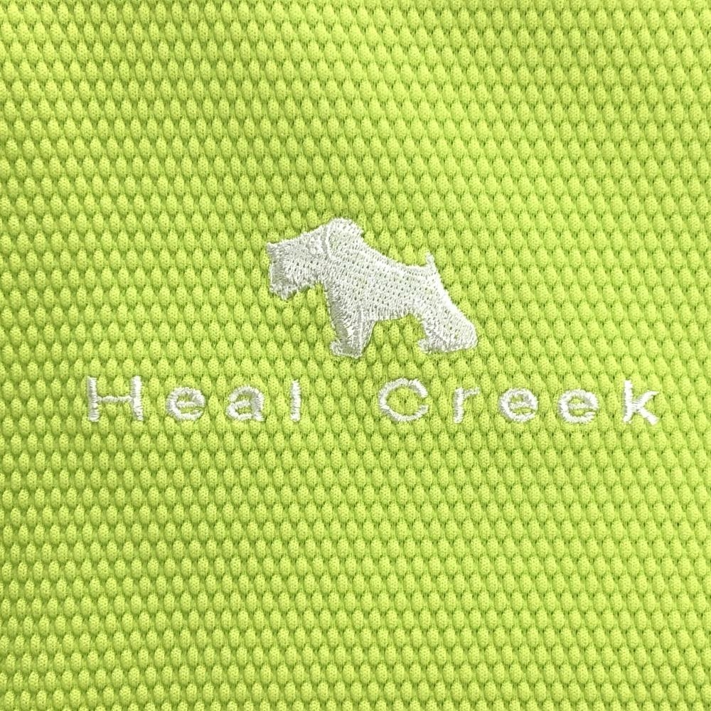 【超美品】ヒールクリーク 半袖ポロシャツ ライトグリーン 凸凹生地 ロゴ刺しゅう レディース 40(M) ゴルフウェア Heal Creek