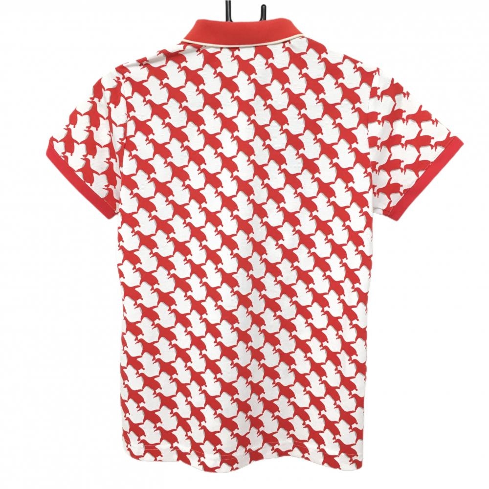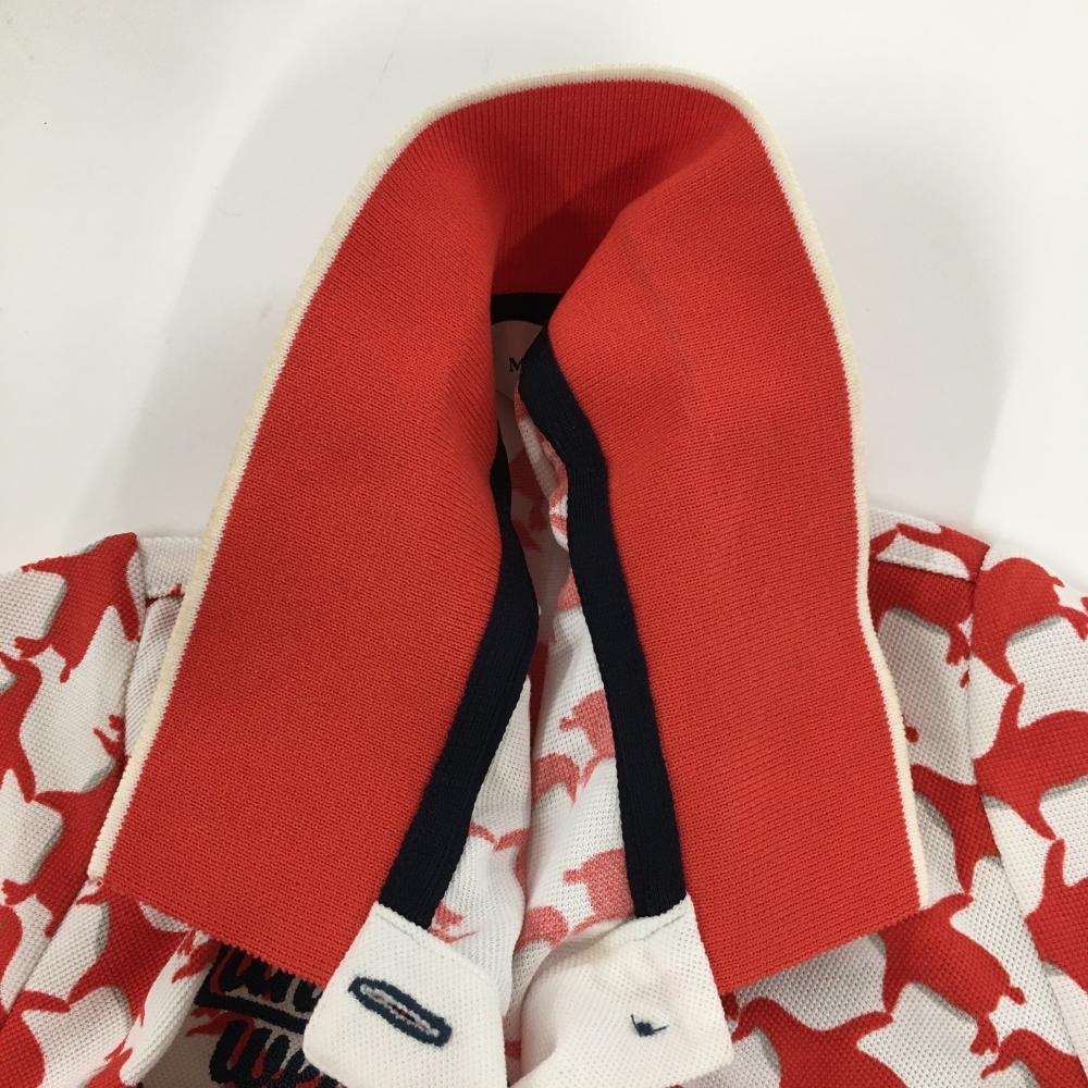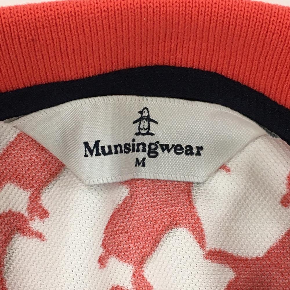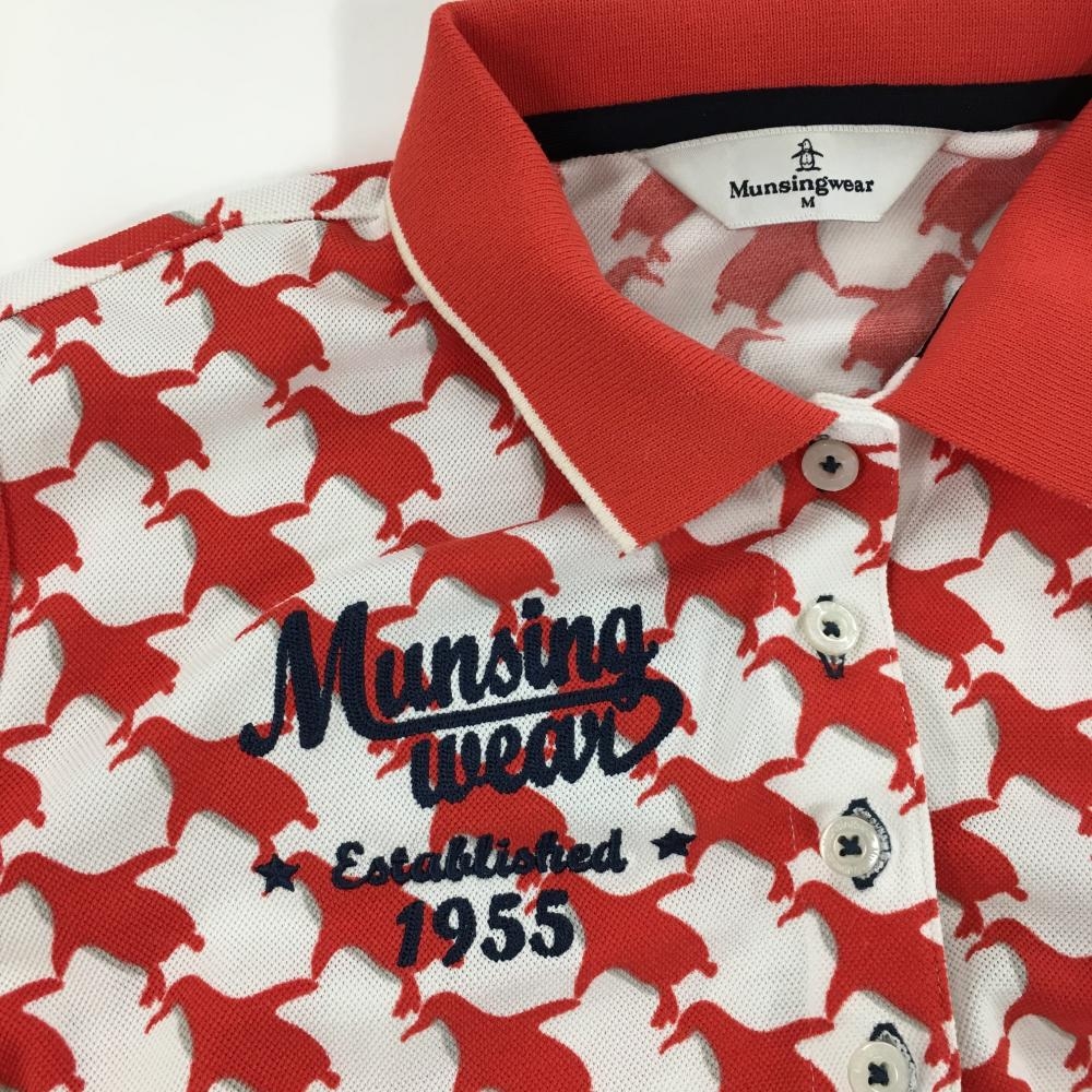マンシングウェア 半袖ポロシャツ 白×レッド ペンギン総柄 レディース M ゴルフウェア Munsingwear
