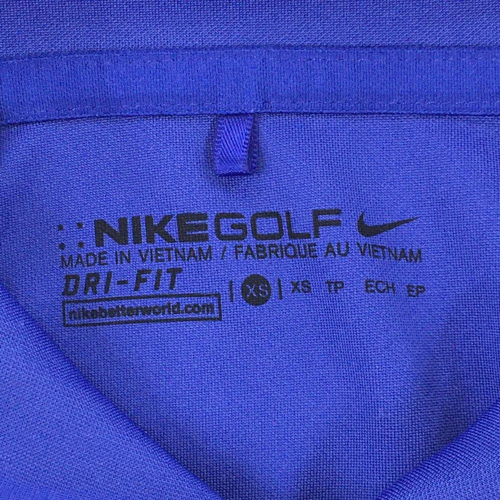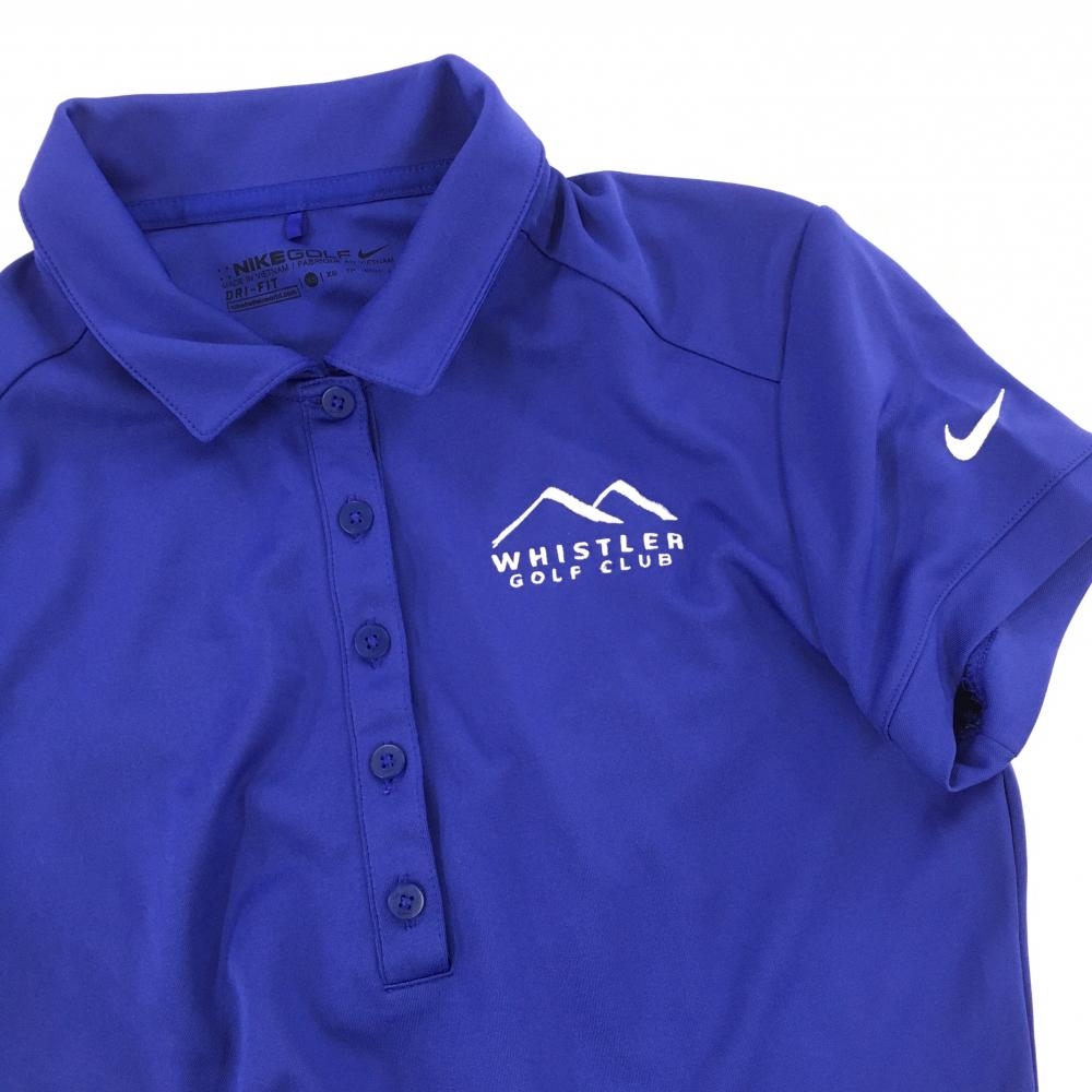 【超美品】ナイキゴルフ 半袖ポロシャツ ブルー×白 袖ロゴ刺しゅう レディース XS ゴルフウェア NIKE