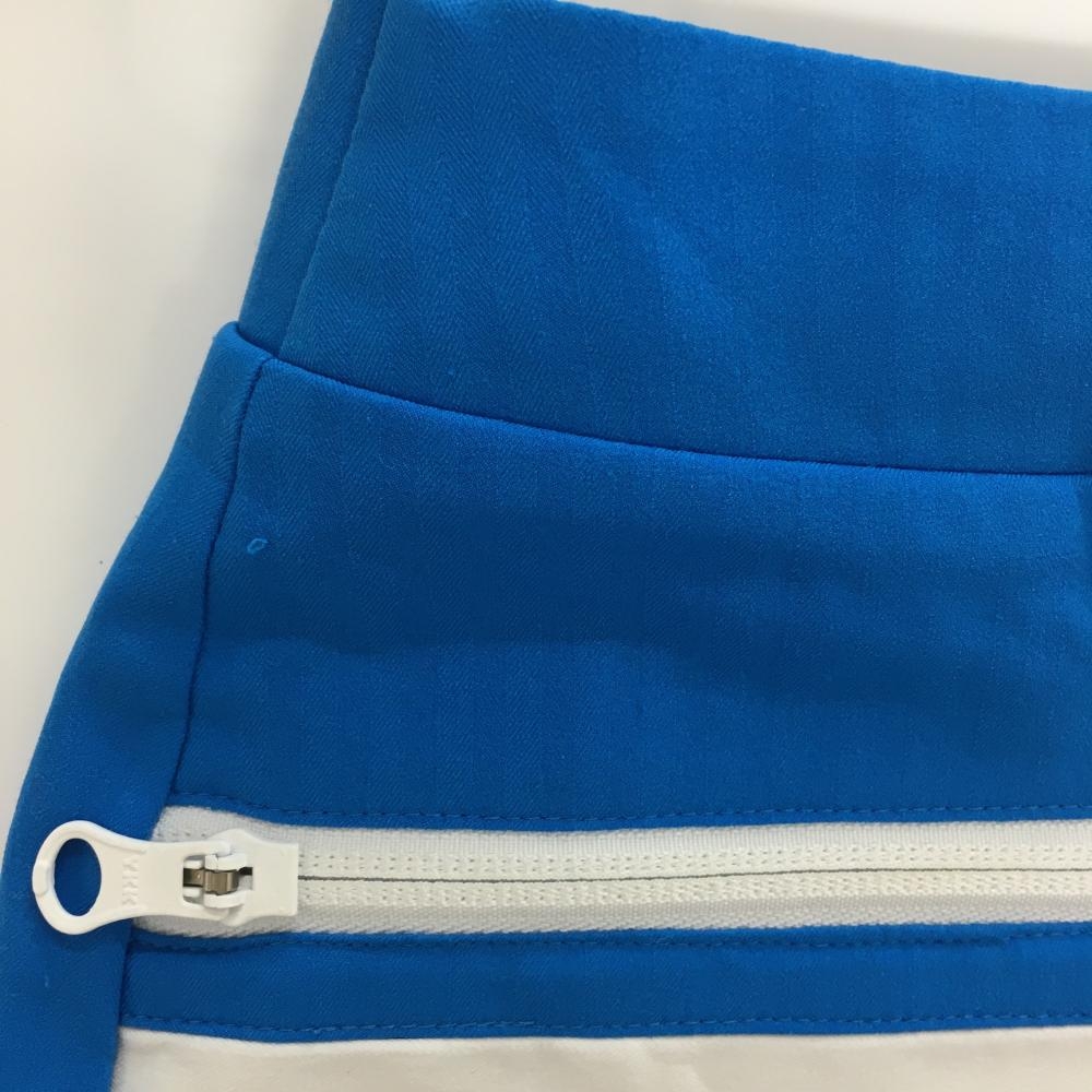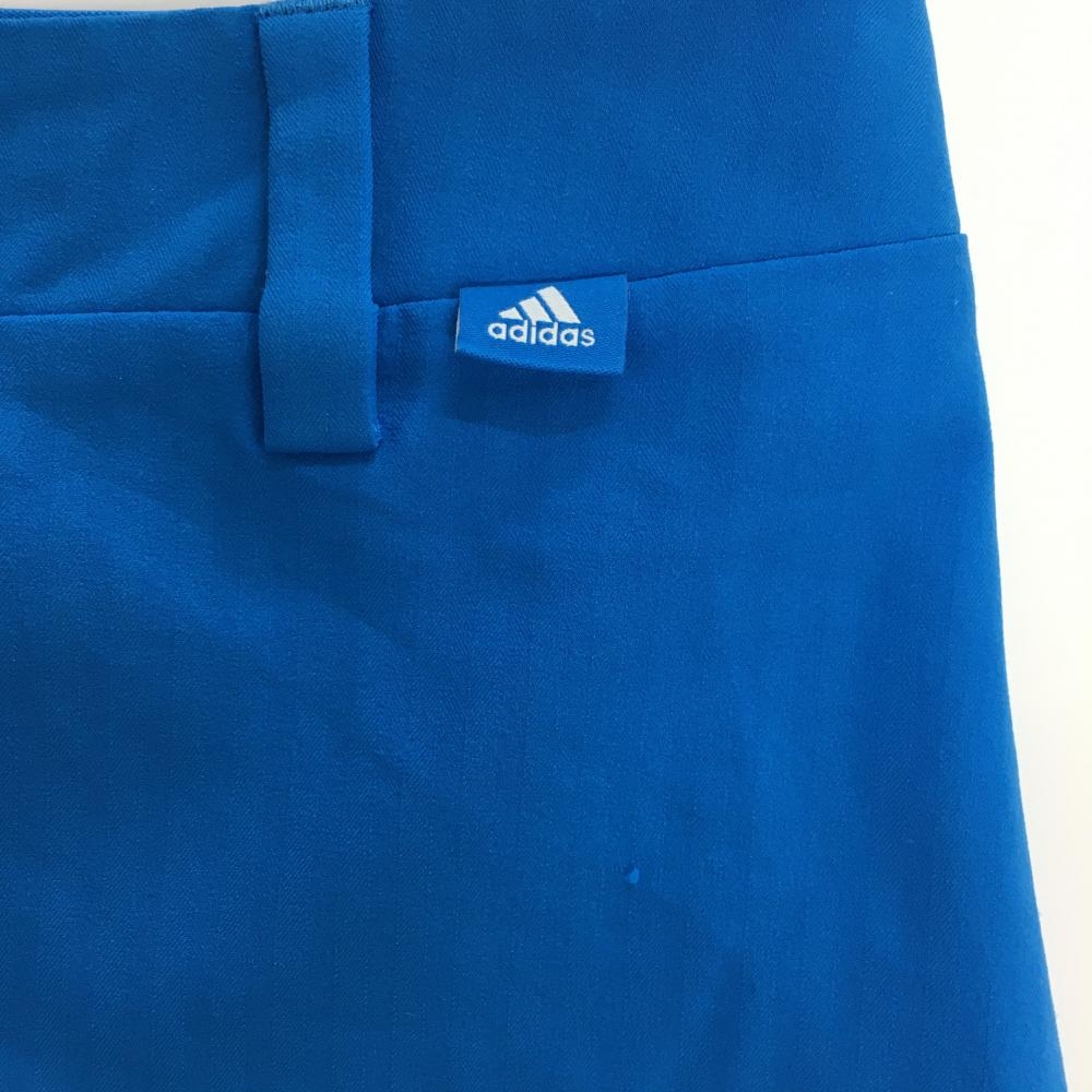 【美品】アディダス スカート ブルー系 ストライプ地模様 内側インナーパンツ ポケット部分3ライン レディース M ゴルフウェア adidas
