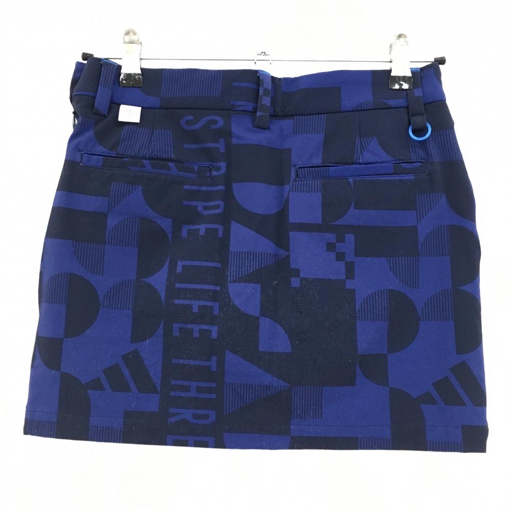 アディダス スカート ダークネイビー×ネイビー 総柄 内側インナーパンツ ストレッチ レディース S ゴルフウェア adidas