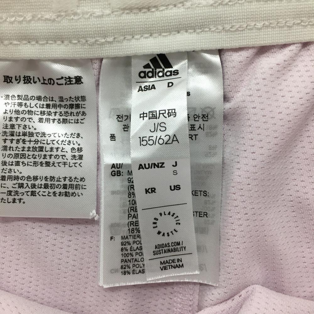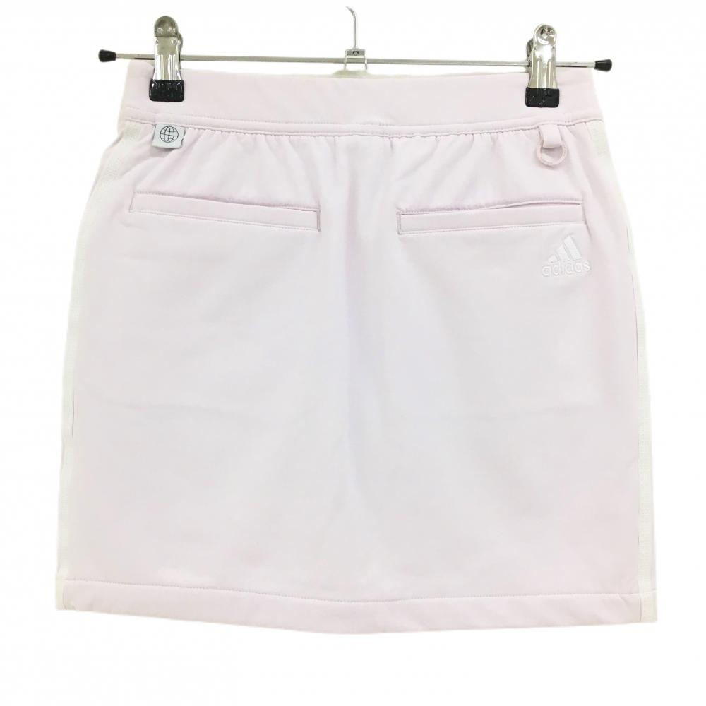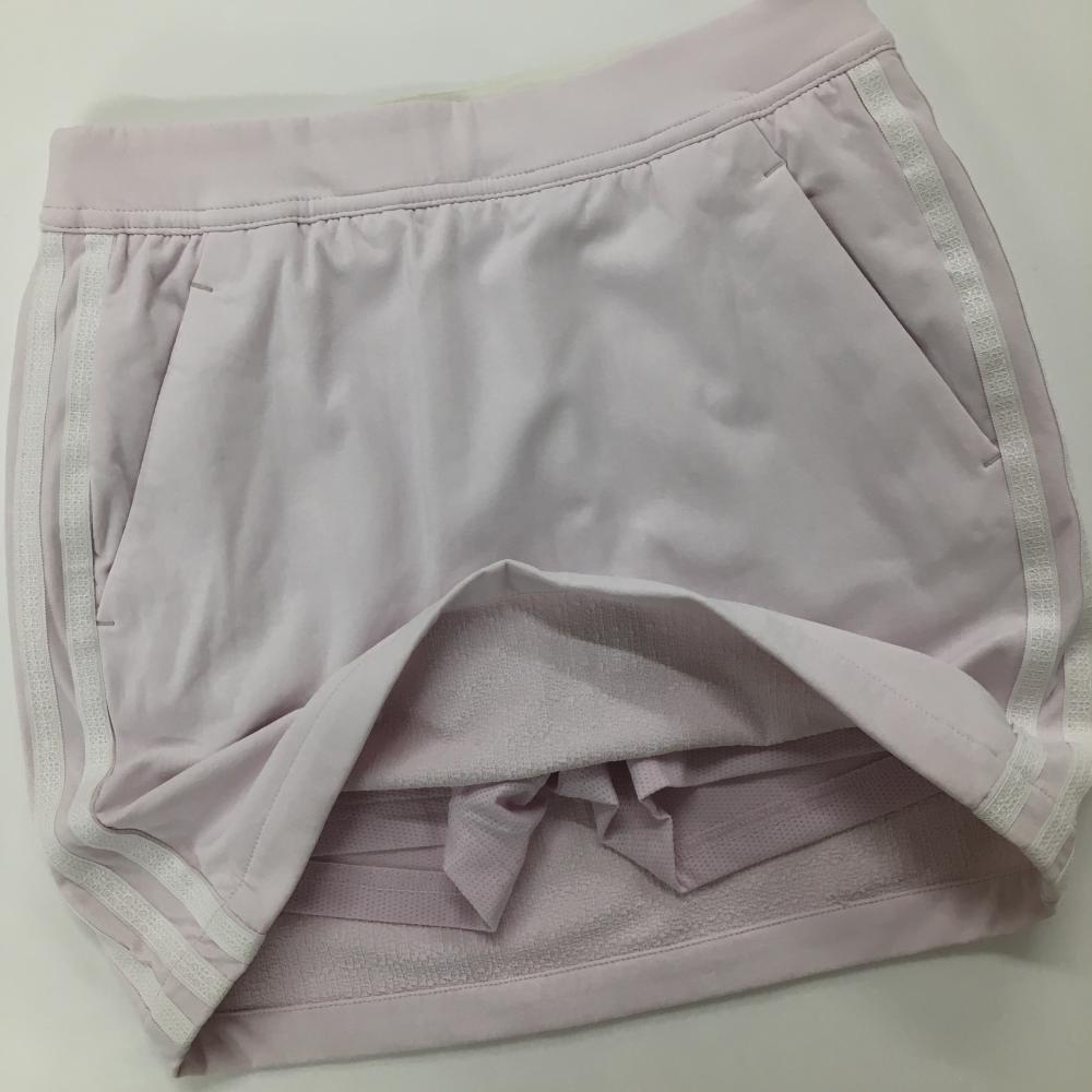 【美品】アディダス スカート ライトピンク×白 サイドライン 内側インナーパンツ ストレッチ レディース S ゴルフウェア adidas