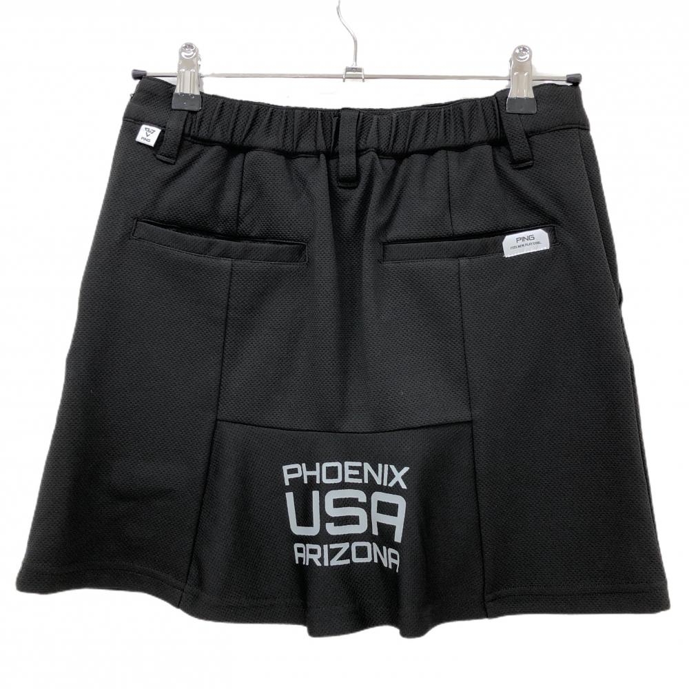 【超美品】ピン スカート 黒×グレー ロゴプリント ストレッチ レディース M ゴルフウェア 2024年モデル PING