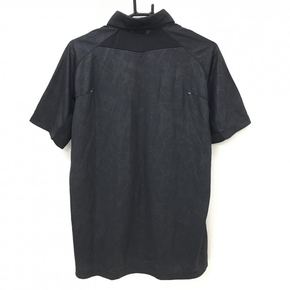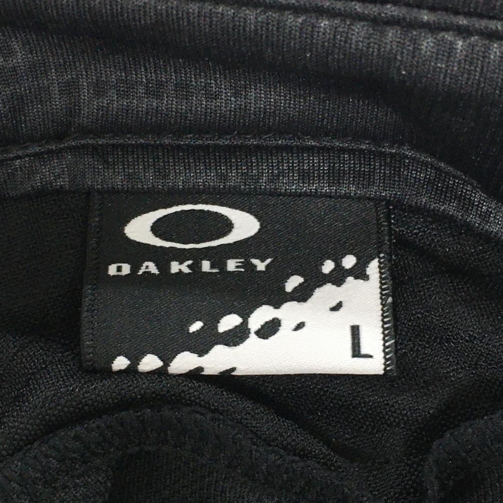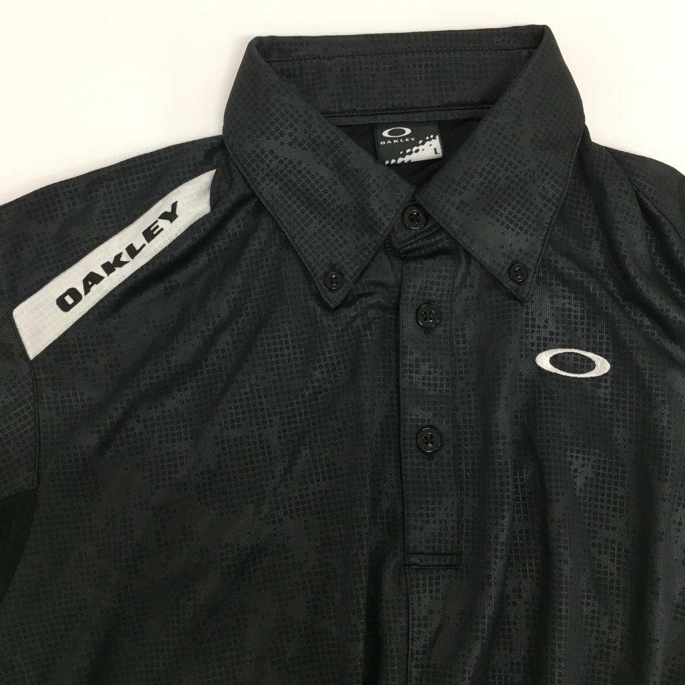 【超美品】オークリー 半袖ポロシャツ 黒 地模様 ボタンダウン ロゴ白 メンズ L ゴルフウェア Oakley