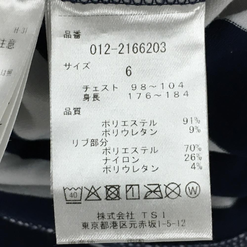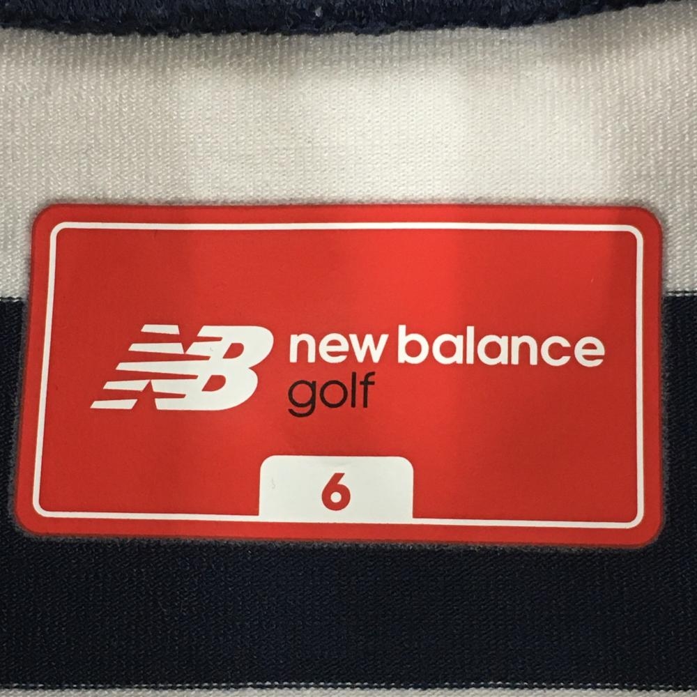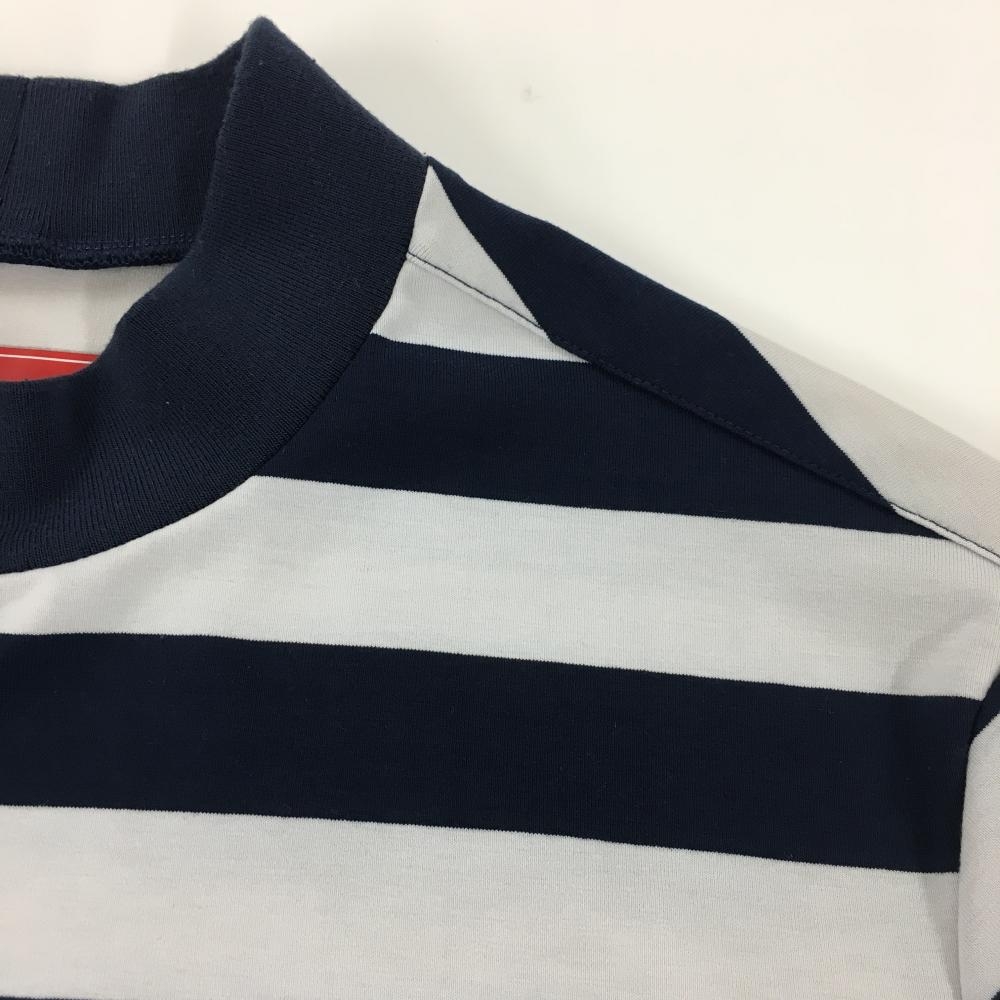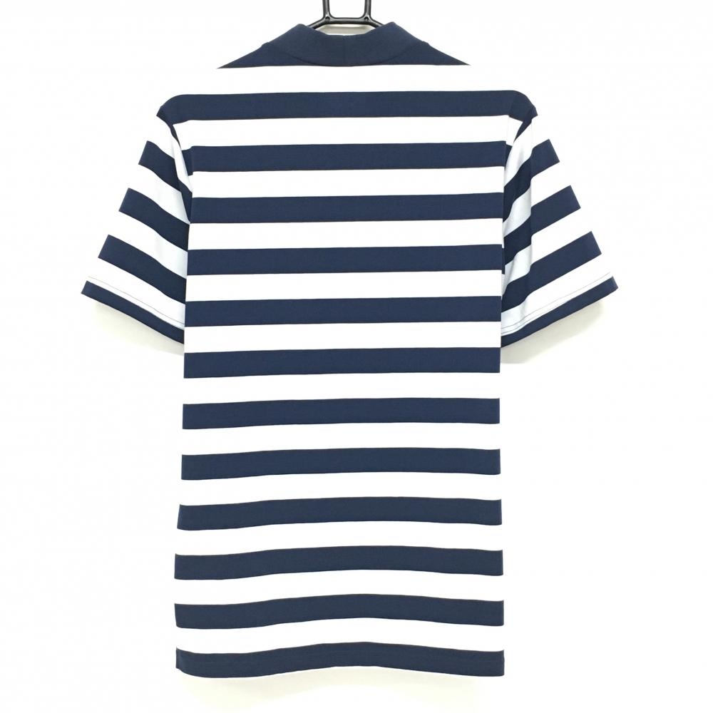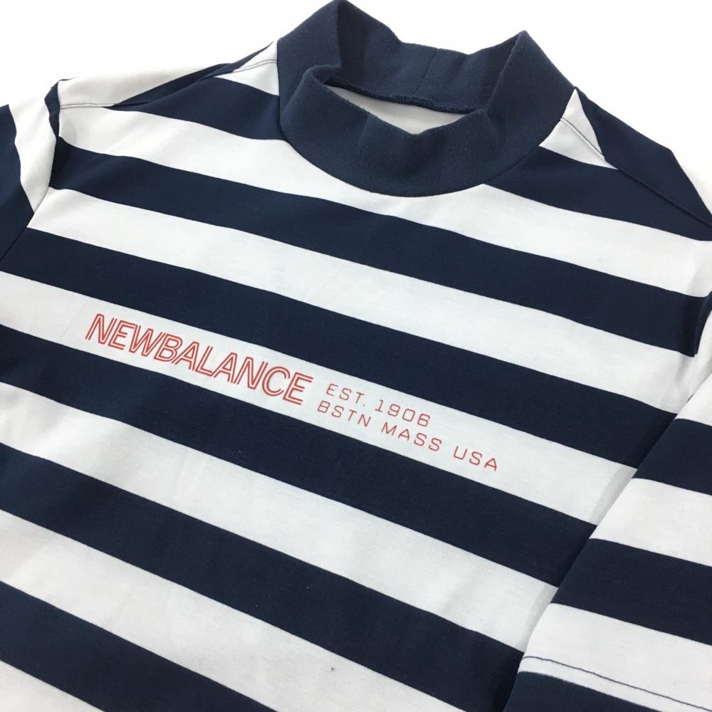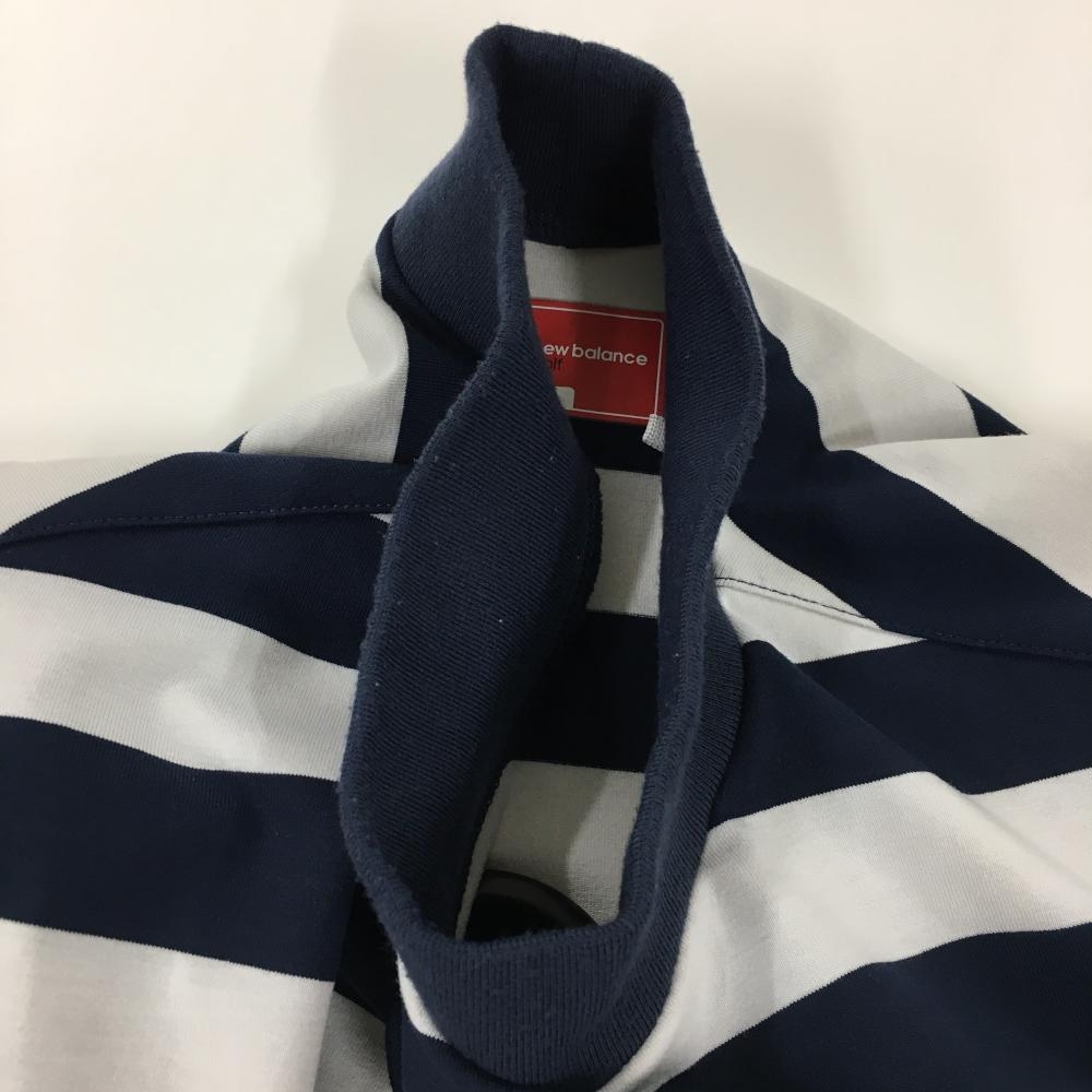 【美品】ニューバランスゴルフ 半袖ハイネックシャツ ネイビー×白 ボーダー 胸元ロゴ メンズ 6(XL) ゴルフウェア New Balance