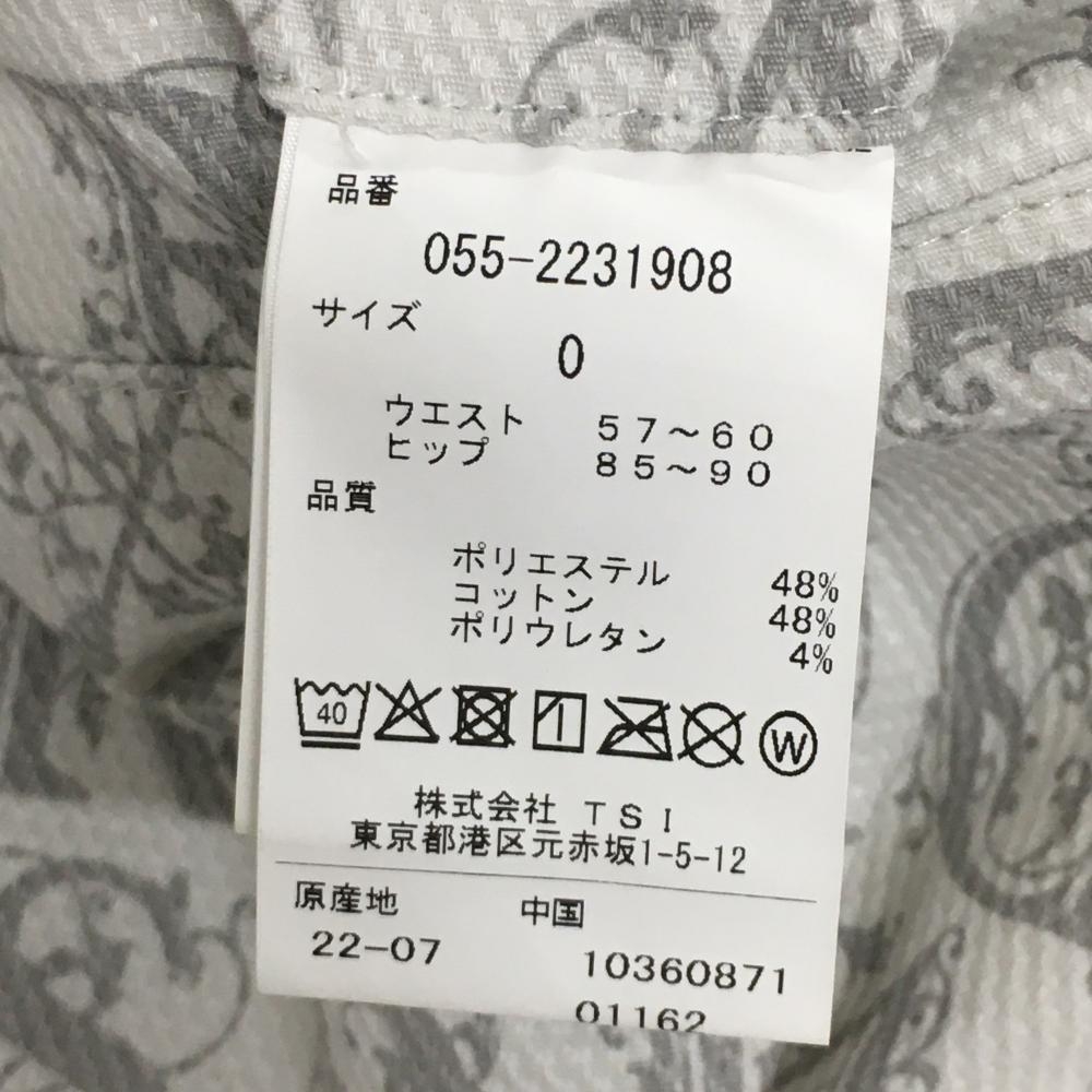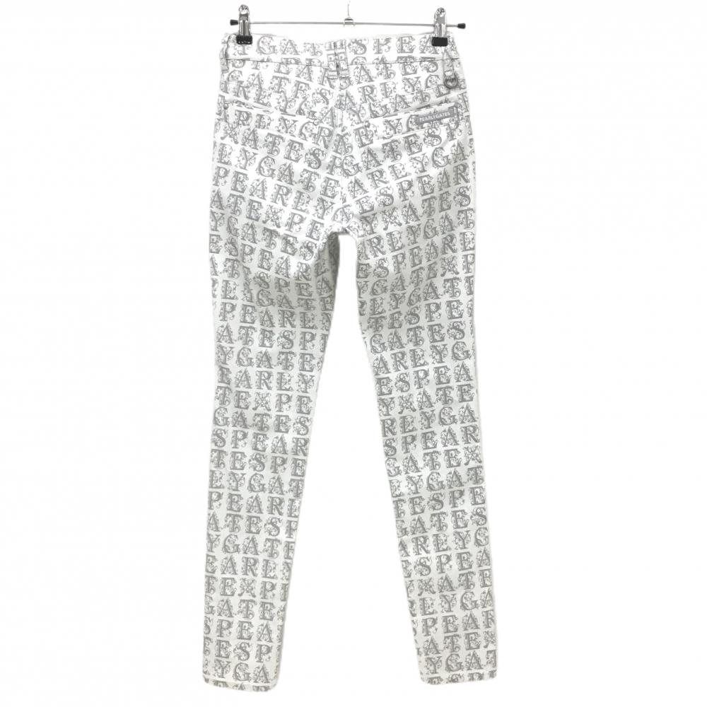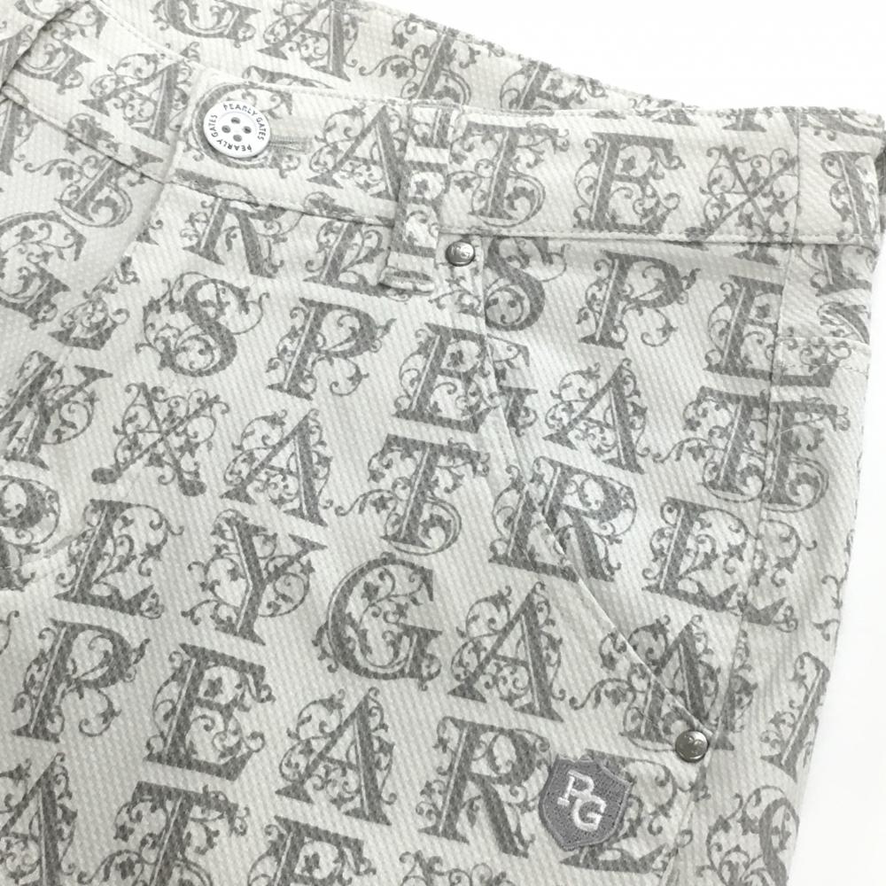 【美品】パーリーゲイツ パンツ 白×ライトグレー ロゴ英字総柄 ストレッチ レディース 0(S) ゴルフウェア PEARLY GATES