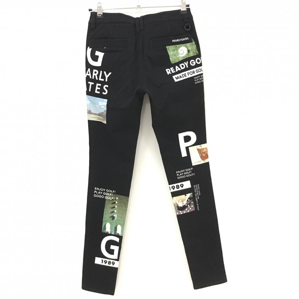 【美品】パーリーゲイツ パンツ 黒×白 総柄 ゴルフ ストレッチ レディース 0(S) ゴルフウェア PEARLY GATES