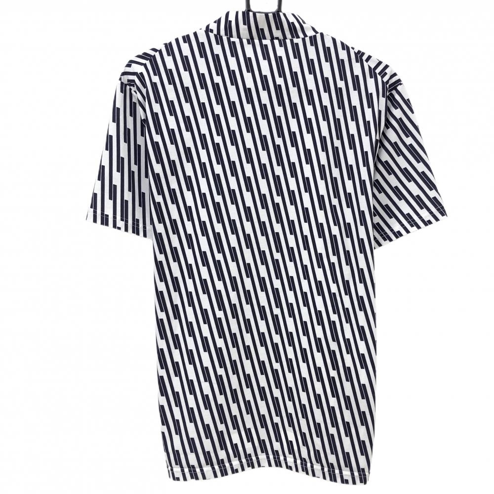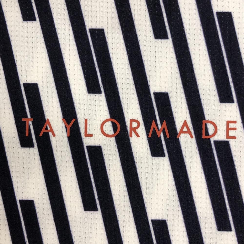【美品】テーラーメイド 半袖ハイネックシャツ 白×ネイビー 総柄 ロゴプリント メンズ O ゴルフウェア 2023年モデル TaylorMade