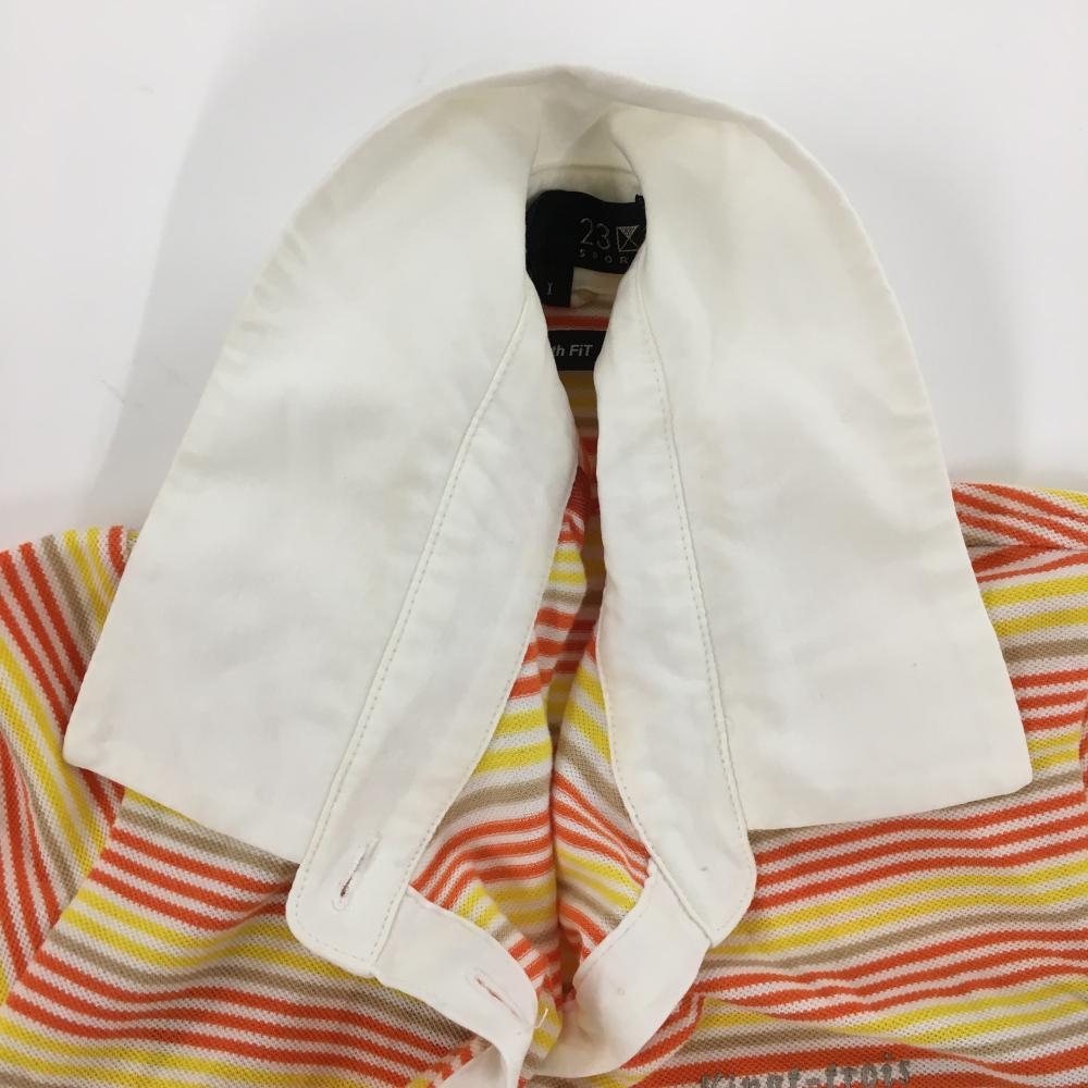 23区スポーツ 半袖ポロシャツ オレンジ×イエロー ボーダー レディース I(M) ゴルフウェア 23区